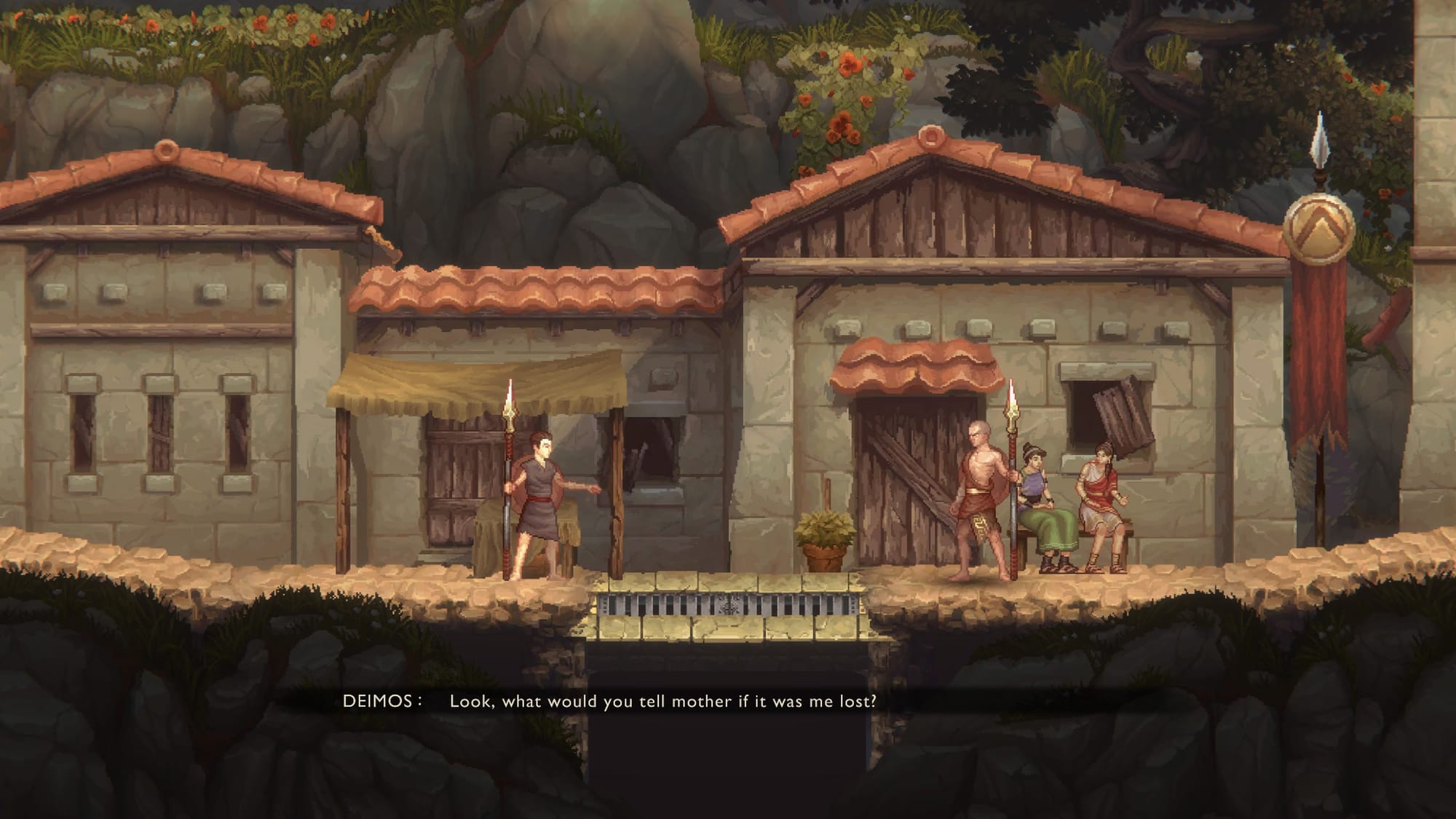 Even so, this story evolves tremendously over time, with both your adventure and the camaraderie between Kratos and Deimos capturing your attention. Kratos is wholly Kratos, all business and hard-nosed, while Deimos is properly delivered as the younger brother. He's charismatic and sociable, hoping that an eventual rescue will come with glory and the affection of a local girl, Amara. The back and forth between them is enjoyable, especially as an older brother myself watching their relationship unfold.