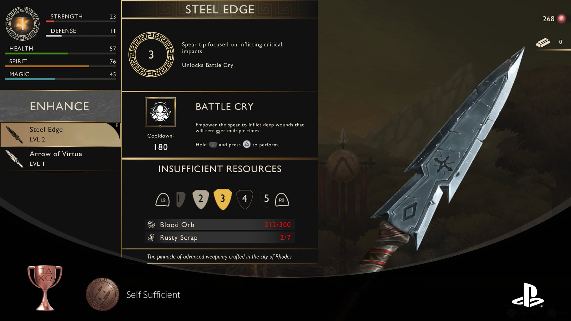 While I don't mind a lack of depth, I didn't even bother with most of these upgrades until the last few hours when I had so many orbs I figured I might as well spend them. With my gear, I chose a spear and shield I liked and stuck with it. This made the multiple spear tips, grips, tails, and shield rims, on the other hand, feel pointless, especially with more effort required to upgrade them, which had already gone into the ones I had originally chosen. The worst part was finding out completing the skill trees unlocks another set that can upgrade your health, spirit, magic, and blood orbs absorbed – something you'd never know if you didn't unlock things. A tad annoying if you ask me.