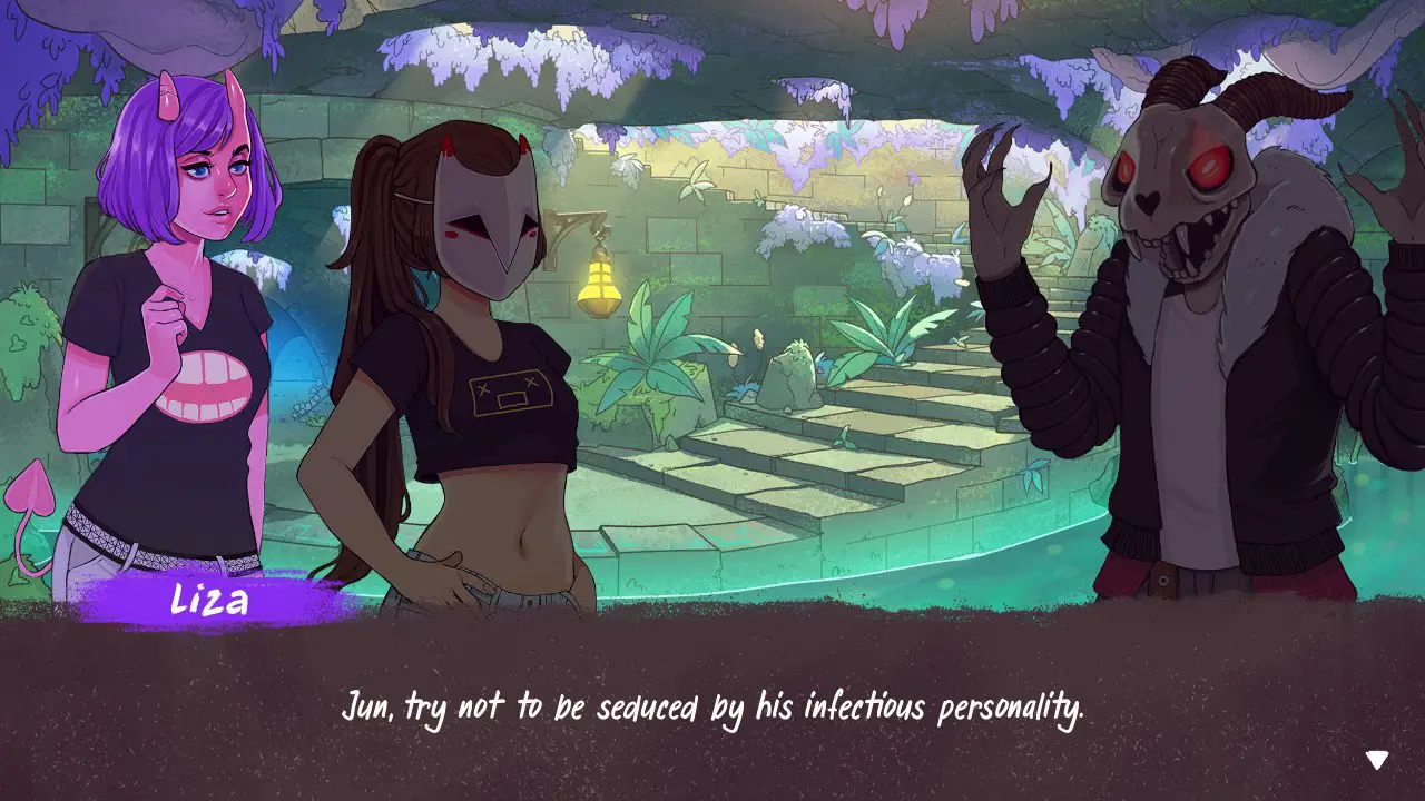 I do commend The World Next Door for its fun and relatable teenage cast. While Jun is a rather vanilla protagonist (who can change her demeanor based on answers you give during conversations), the supporting cast is cool and fleshed out, from the hot-headed Horace to the walking valley girl Lux. The cast is almost entirely dubbed in this sort of simlish/Animal Crossing speak that’s endearing yet also gives each character personality, even if you can’t understand a word they’re saying. So much so that an optional television in the hub world featuring Youtuber Akidearest feels really out of place; these encounters are dubbed in full English, and it comes off as oddly inconsistent with the rest of the voices. While listening to this commentary is completely optional, I would have rather had her character speak a similar simlish dialect, but it’s just a minor nitpick.