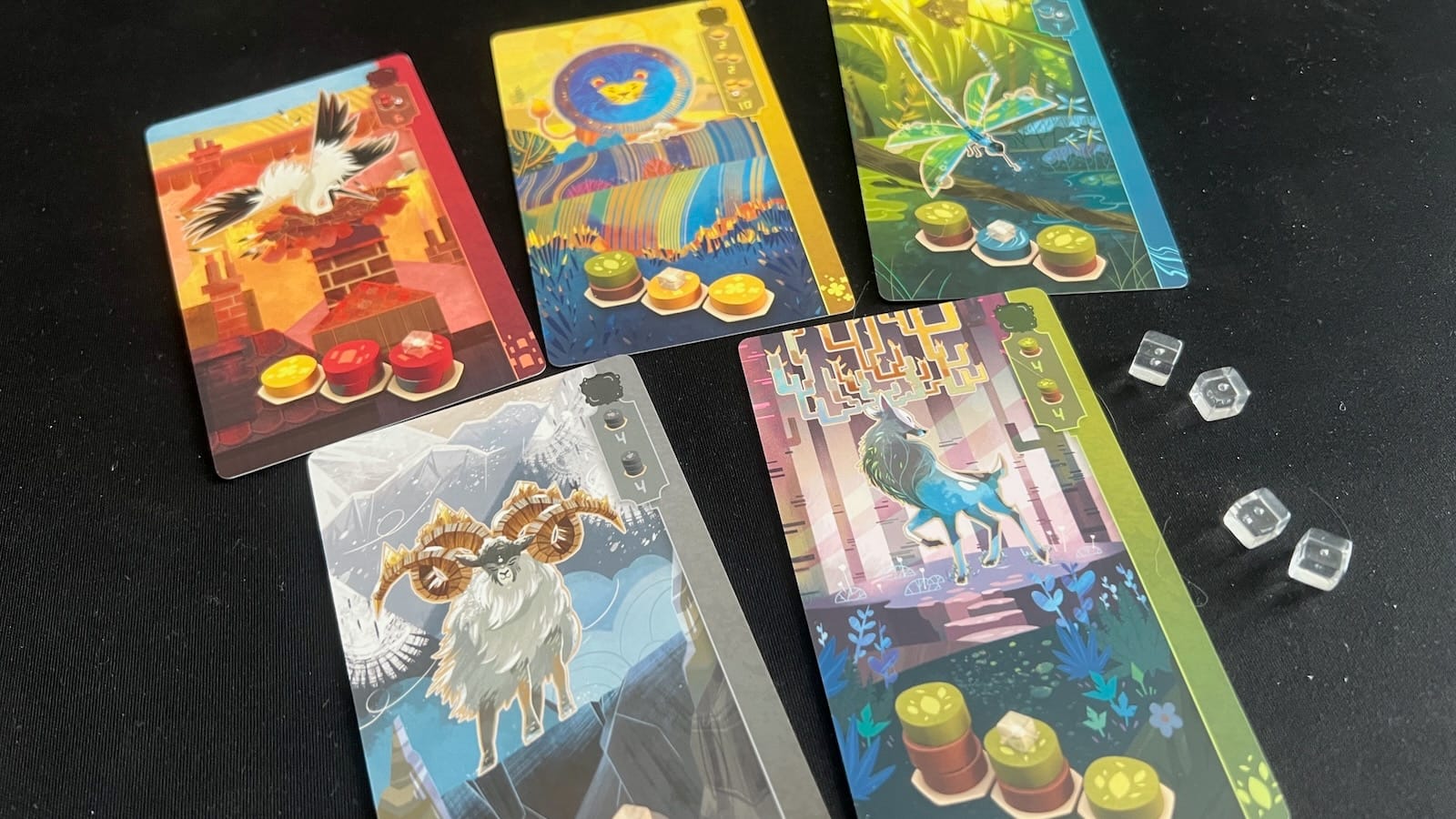 Once players have a game or two under their belt, they can add in the Nature’s Spirit cards into the game. Two special objective cards are dealt to each player and one is chosen. A special clear cube is used on this card. Once the pattern depicted on the card is fulfilled and the cube added to the player board, the card unlocks a unique end game scoring condition for the player. This can include extra points for specific landscapes or groups of connected landscapes.