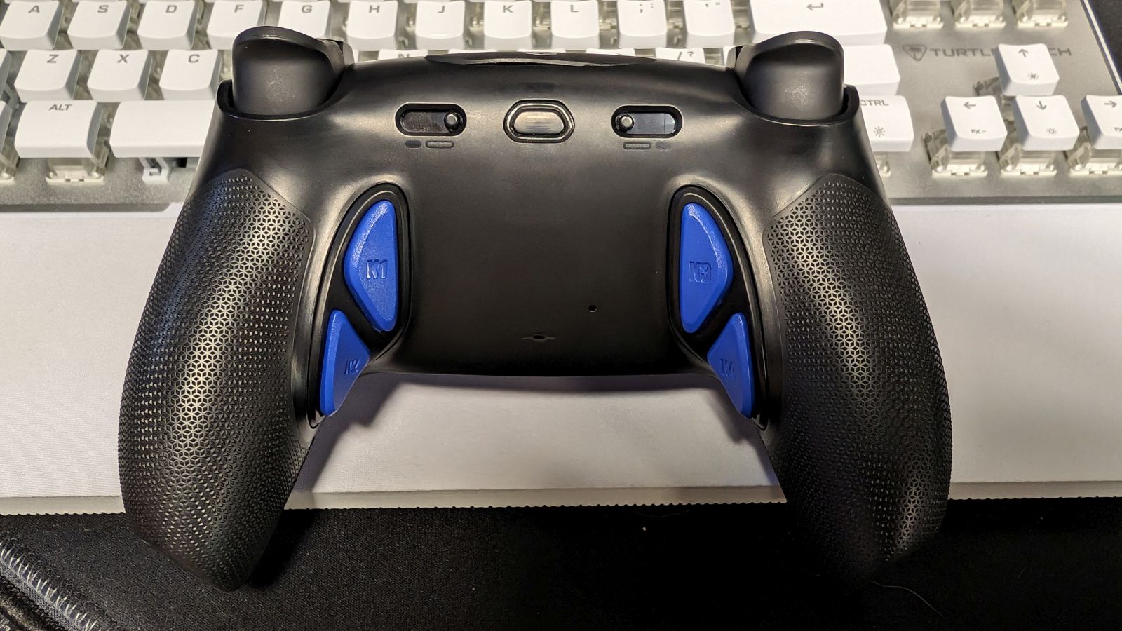 The digital triggers are a surprise, not just because of what they do, but also because of what they don’t. Many custom controller companies have to get rid of what makes the DualSense special in the adaptive triggers. Here, those have been preserved, with a slider that swaps between those and digital triggers. The digital triggers work perfectly, clicking just like a mouse button with a 1.5mm trigger pull that feels great. Also, in case you wondered, the regular haptic feedback is here too, and it’s still as sensational as ever.