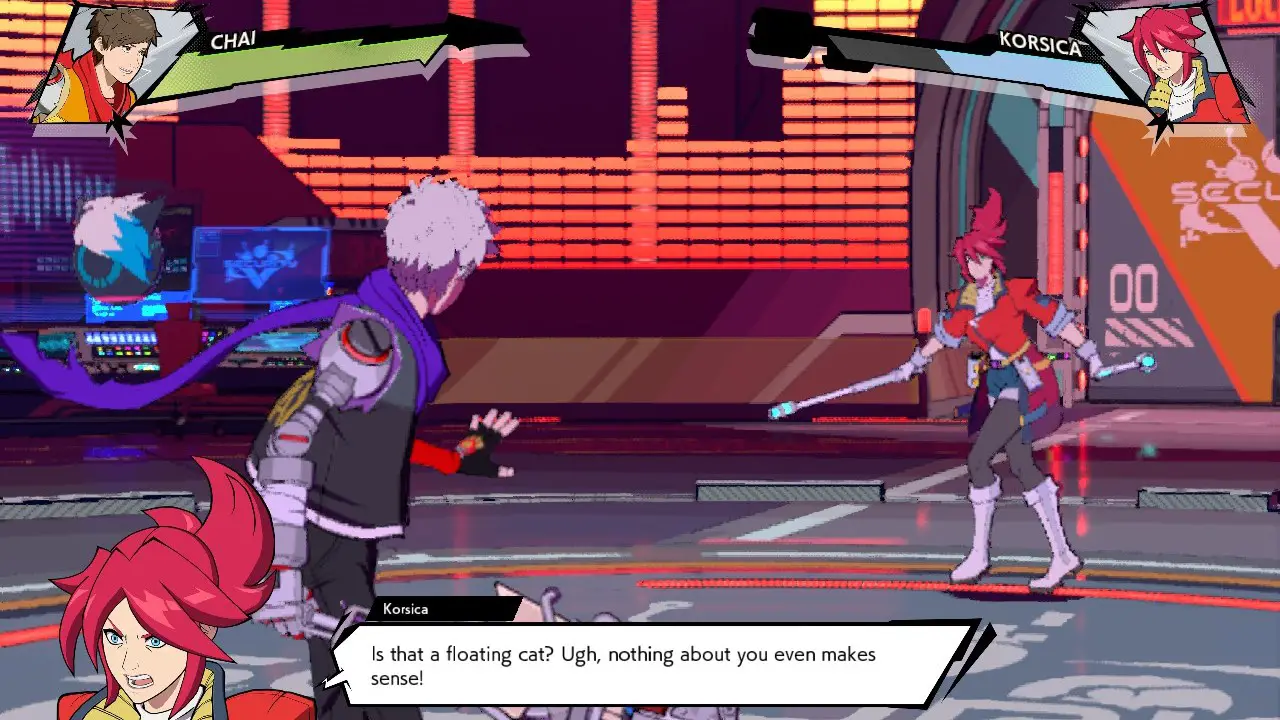 You play as Chai, a college dropout who has just joined Vandelay’s Project Armstong. As he’s entering surgery to replace his right arm with a robotic one, the self styled rockstar’s music player (a Zune as a cute Microsoft throwback) somehow lands on and is fused to his chest. Now everything is grooving to the beat of the music, and I do mean everything. From platforms to decorations on the walls to yours and enemies’s attacks, it all moves to the rhythm. After a brief tutorial easing you into things, you’re set loose on the first combat encounter.