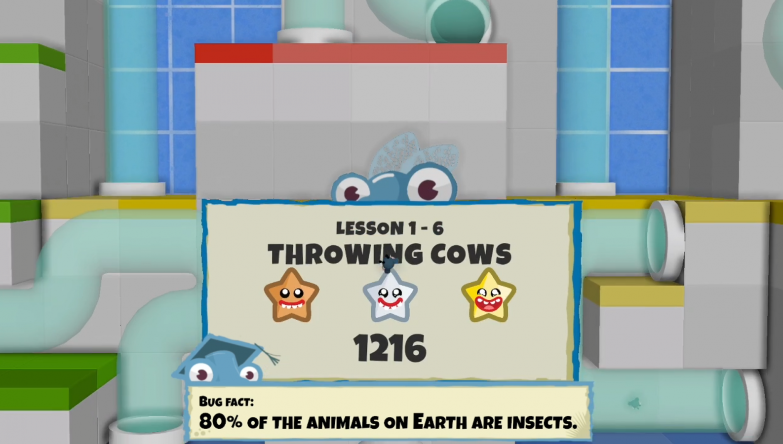 The flies are the standard bug with no special ability, but they act as a great introduction to the game. The fly levels include tasks such as carrying escaped cows back to their pen and blocking them in with random objects, building a tower of building blocks as high as possible, delivering fridges to various houses, and so on. Fireflies help you see better in the dark, but other than that they aren’t that different than the standard flies. Fireflies get to perform tasks such as searching for gems in mines, robbing a museum, etc. Yes, you heard right. You sneak into a museum past cow security guards and attempt to steal a large gem. It’s ridiculous, but man is it funny to watch.