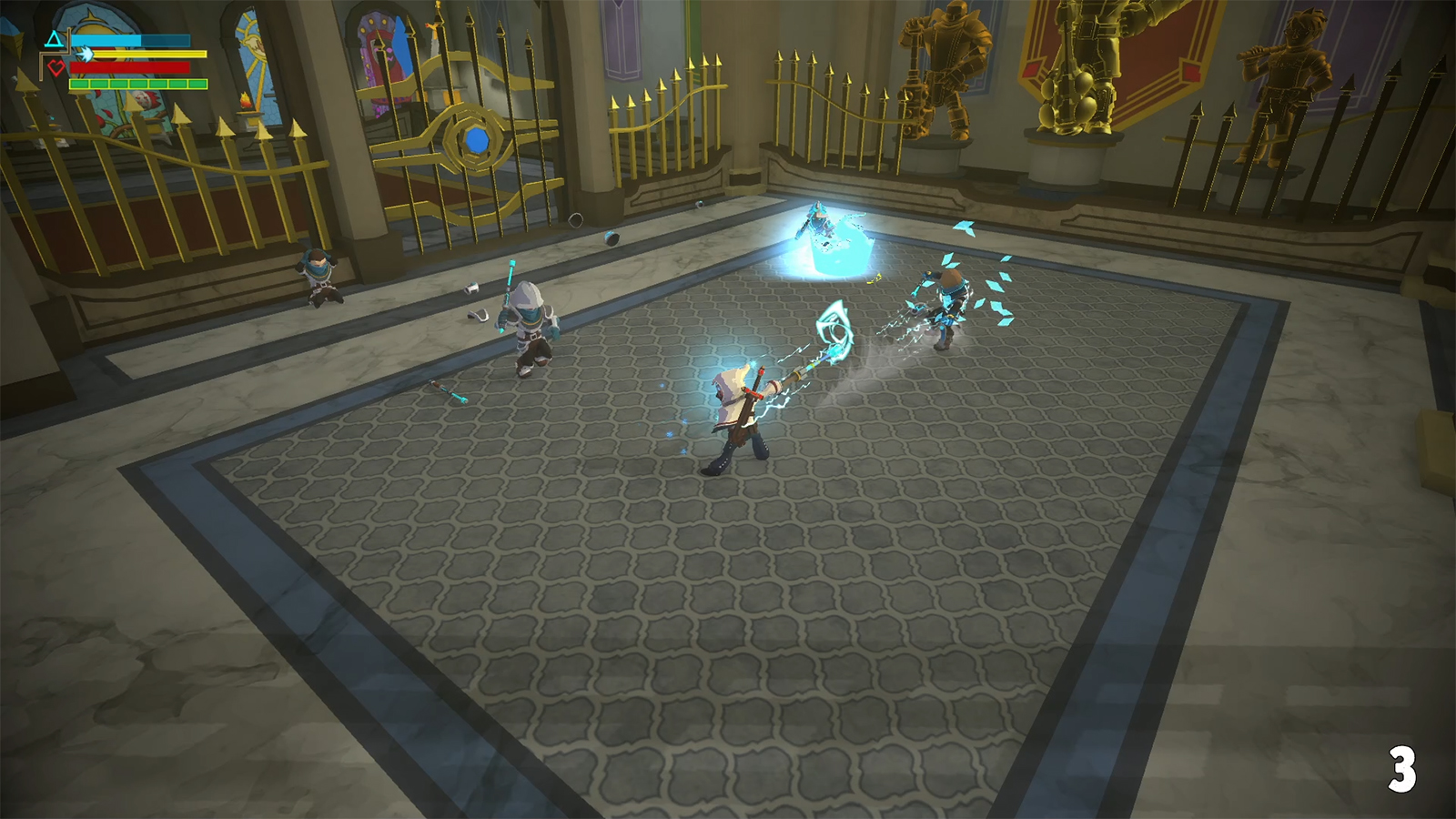 The draw of Hindsight is the ability to go back in time and change outcomes to unlock different endings, but I gave up after finding four. Even though I could finish in two hours on subsequent runs (first run took me 5 hours) it became unbearable to slog through the boring levels. The dungeons alternate between rooms with enemies and solving ridiculously easy and annoying block puzzles. The puzzles, if you can call them that, do nothing but act as roadblocks. You can solve all of them in less than 30 seconds just by observing the patterns. At times, it made me wonder if Hindsight was actually made for kids. But that thought quickly went away once combat kicked in.