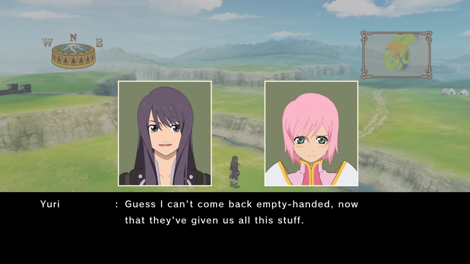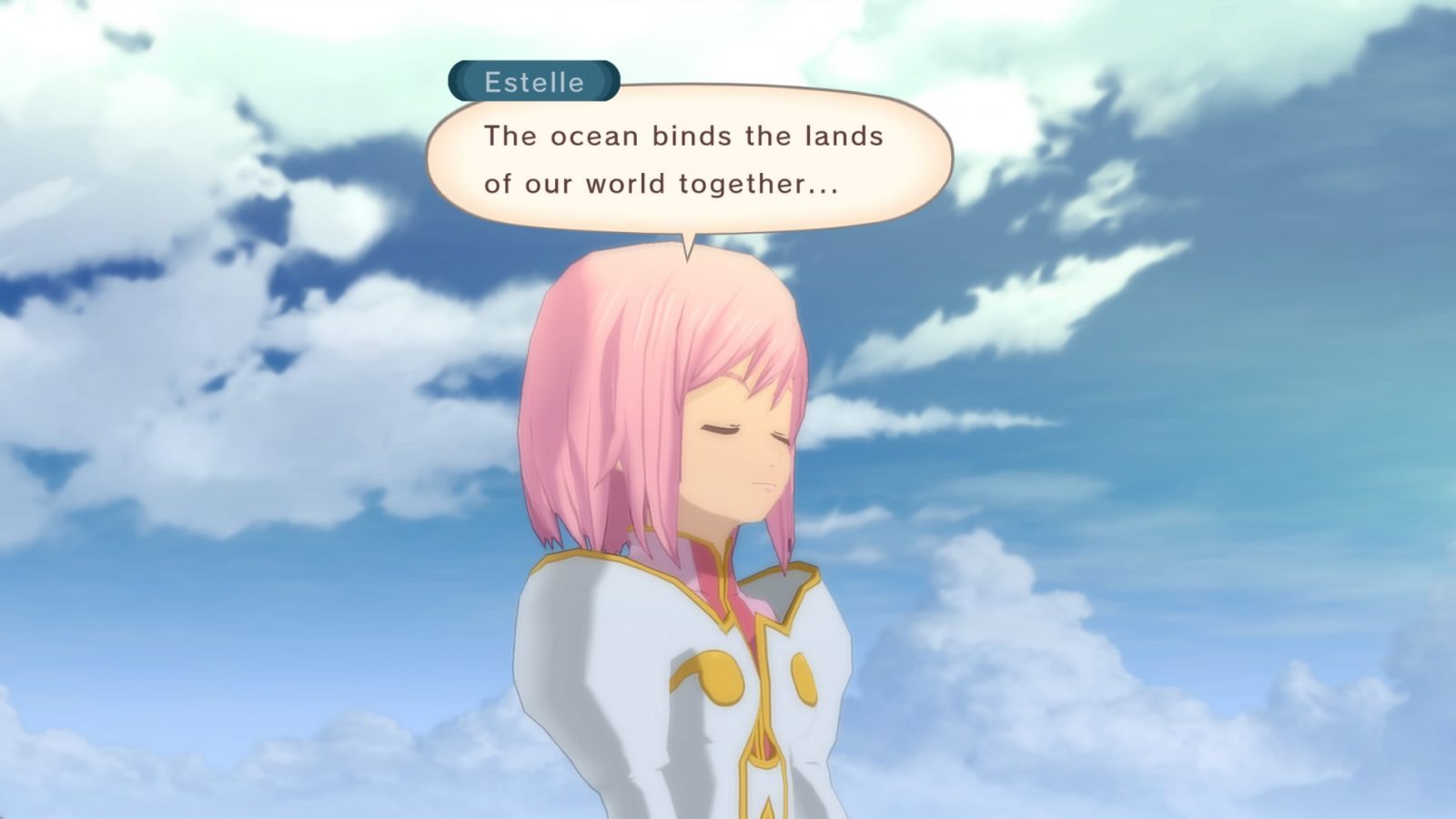 But where the storytelling differs from other JRPGs I’ve played, especially ten years ago when Vesperia was first released, is the nuance of the character development. First, there was a lot of it. Most of the character development was handled through “skits,” overlaid dialogue boxes with animated character portraits. The simplicity of the character portraits and spoken dialogue allows for numerous bite sized interactions between characters, without the need to bog down the game with cutscene after cutscene, while still allowing the player to follow the larger story in case you missed or skipped through these sections. However, I didn’t find myself skipping through these moments. In most RPGs, there’s always one or two annoying characters where I can’t wait to brush by their story moments, but I never found those characters or those moments during this game.