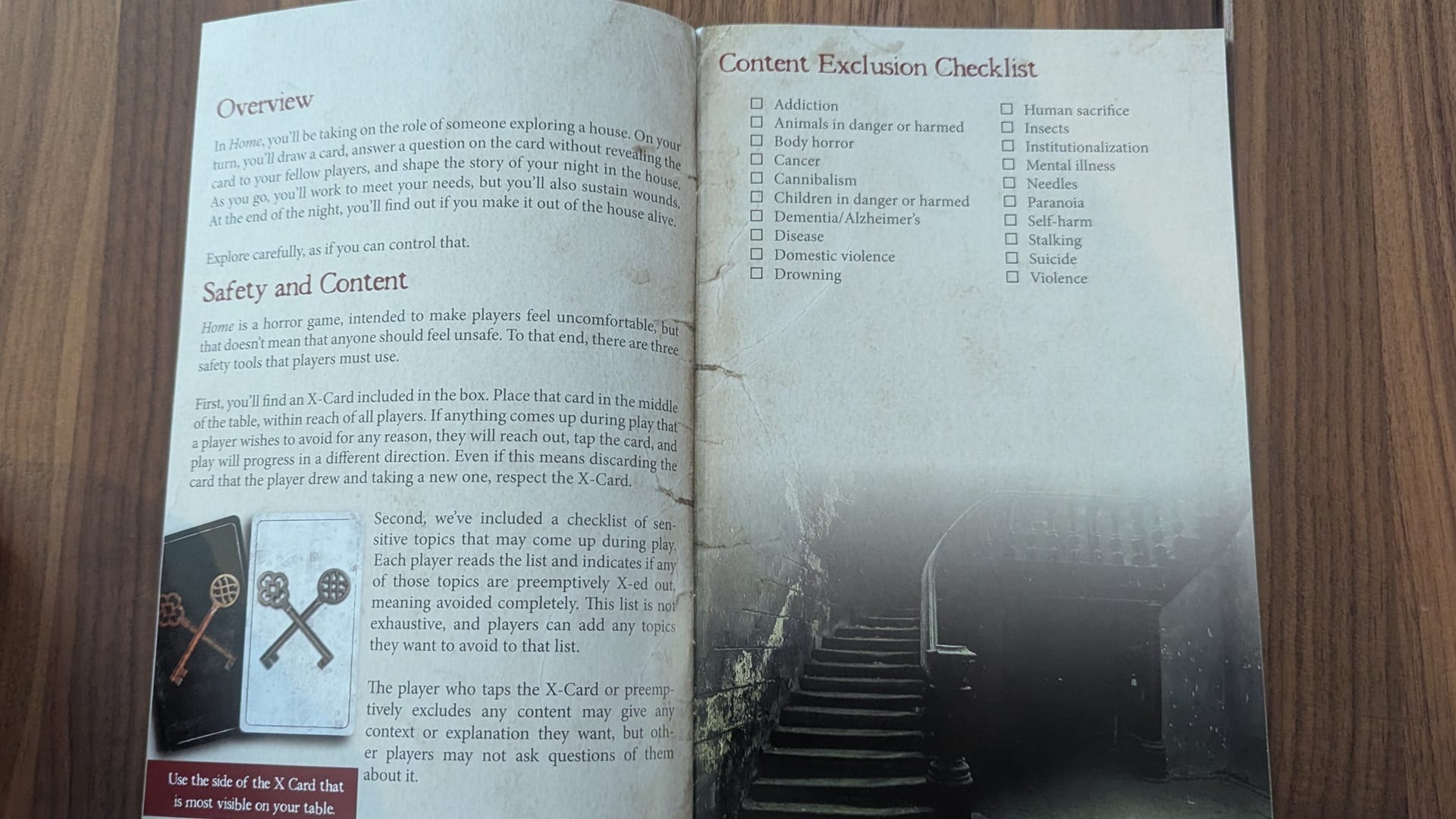 The high quality of writing extends to the cards too. While I haven’t played every scenario, I did spoil them by peeking at the cards. I would describe the majority of the prompts as thoughtful. To use a basic example, why is my favorite childhood toy here in this room, where it can’t possibly be? Everyone I played this game with had to take a moment to answer their prompts. You draw your card one turn ahead, while another player is narrating their scene. What that player narrates could change your thoughts. When it is your turn, you’re just trying to answer the prompt, but for everyone else, there’s a moment of tension. What did they find? I found that this really added to the horror element. As a storytelling game, Home is a fantastic vessel for telling something spooky.