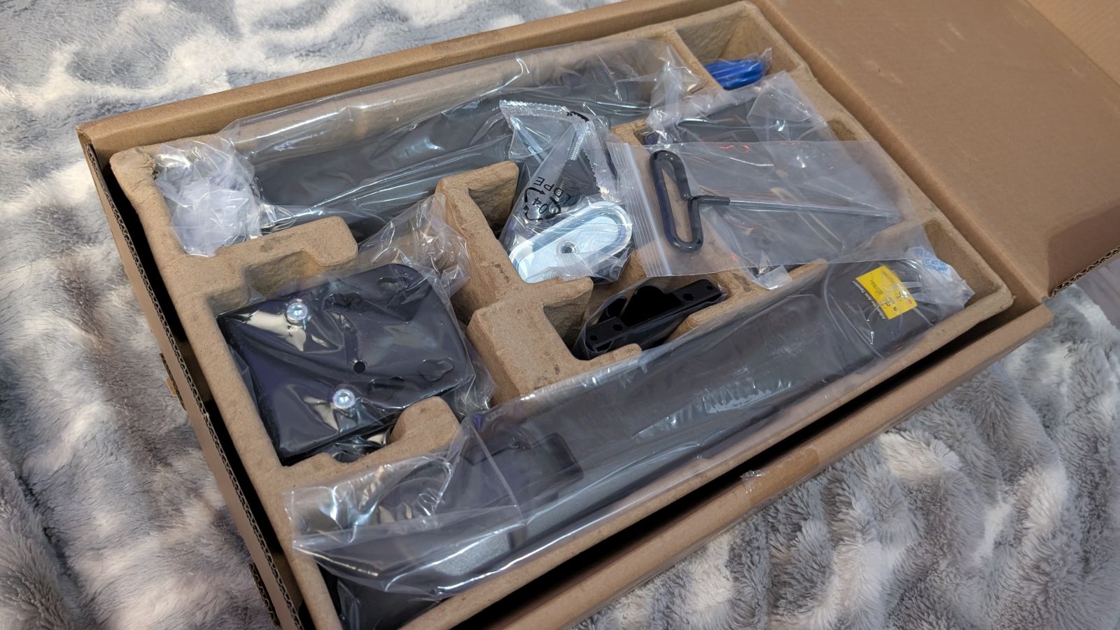 First and foremost, when you open the box you’ll be greeted with a whole lot of metal – aircraft-grade aluminum to be specific. While a great many monitor mounts have resorted to cheap plastic parts, Huanuo builds their mounts to last. If you need proof, look no further than the sizes it can accommodate – 13” to 49” (yes, you read that right – 49”), and up to a STAGGERING 35.3 lbs with full motion. Normally, to get that large and heavy of a monitor mounted requires a solid immovable stand or a very expensive mounting arm. Here we have a fully articulating mount arm able to do the job.