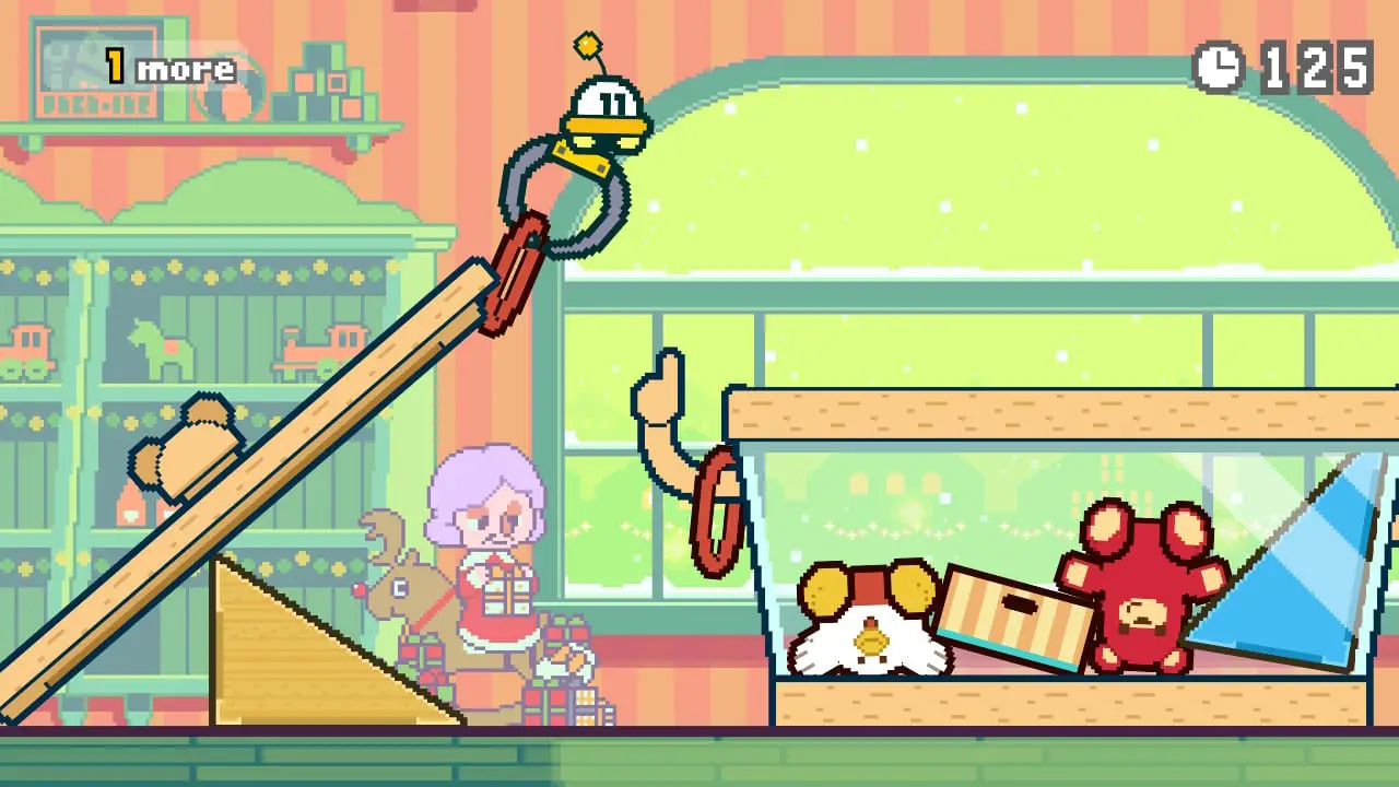 The transition from a portrait orientation smartphone to the widescreen orientation Switch is a noticeable one, but one that makes all the difference. While the stages were made for a smaller phone screen, here they’re widened a little. For those who are experiencing Part Time UFO for the first time, this won’t be an issue, but Jobski veterans might be a little disoriented with the extra leg room here. It doesn’t make for a worse experience, but some of the compact puzzle stages feel a bit barren in comparison to the new Toy Store stages, for example. There’s also a lack of touchscreen controls in this version, which I feel is a missed opportunity, especially since the mobile version worked perfectly with them.