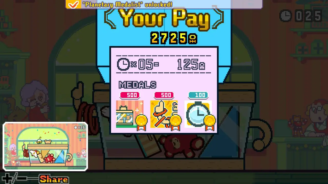 In the beginning of each job, you’re given a main goal to achieve plus three hidden goals that will provide medals and extra pay if you decide to pursue them. While some of these medals are straightforward (finish the task within the time limit or don’t make the tower of monkeys drop once), some of them are a bit more cryptic, with only the picture icon giving you a hint. It’s not a complicated riddle most of the time, but the requirements are tricky enough that you’ll need to be smart in figuring them out. It makes for a replay value incentive, and that’s pretty neat.