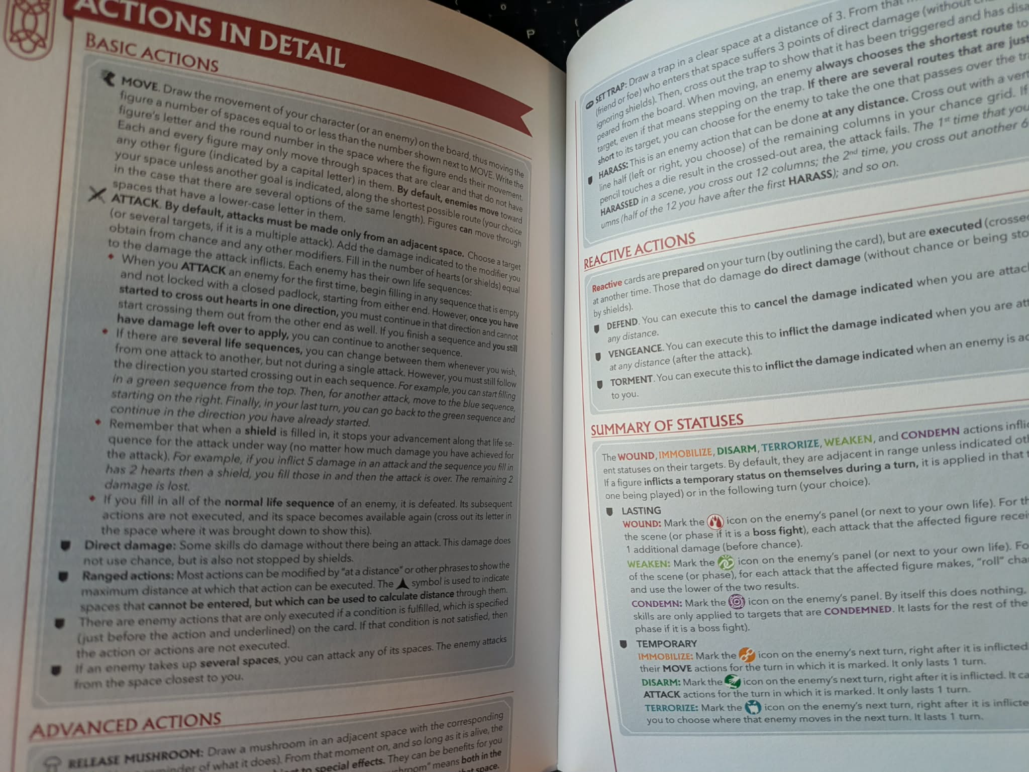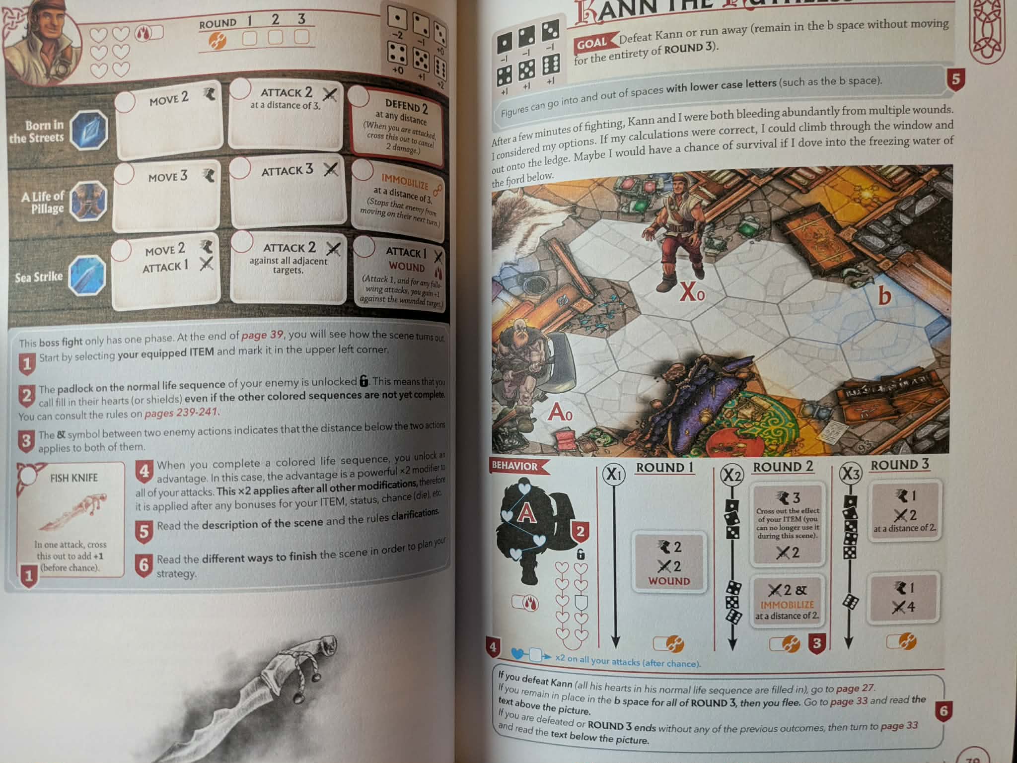 You see, In the Ashes’ campaign is replayable. Doing so means making different decisions, generally going down different page routes, but some of them will be repeated. Playing the second time means marking symbols in different ways and erasing the Save page or finding a way to make clear which marks are for which game. It’s nice in that you can play a random page or combat once you’re familiar with the rules, in a semi-roguelike fashion, but the need to write in the book does limit its usefulness, and in the worst case, buy a new copy. The problem is compounded because the combat, as fun and intricate as it is, also features a randomness that can make it much harder or easier based on RNG. Pages have random dice figures on them, and when you or monsters make certain attacks or magical spells, you flip to a random page and change the result depending on the dice roll. These could make or break an encounter regardless of smart plays. It further encourages the type of replay or different decision-making that permanent markings make difficult. Especially in a book with so many decisions, it feels disappointing how off the rails randomness can render the flow.