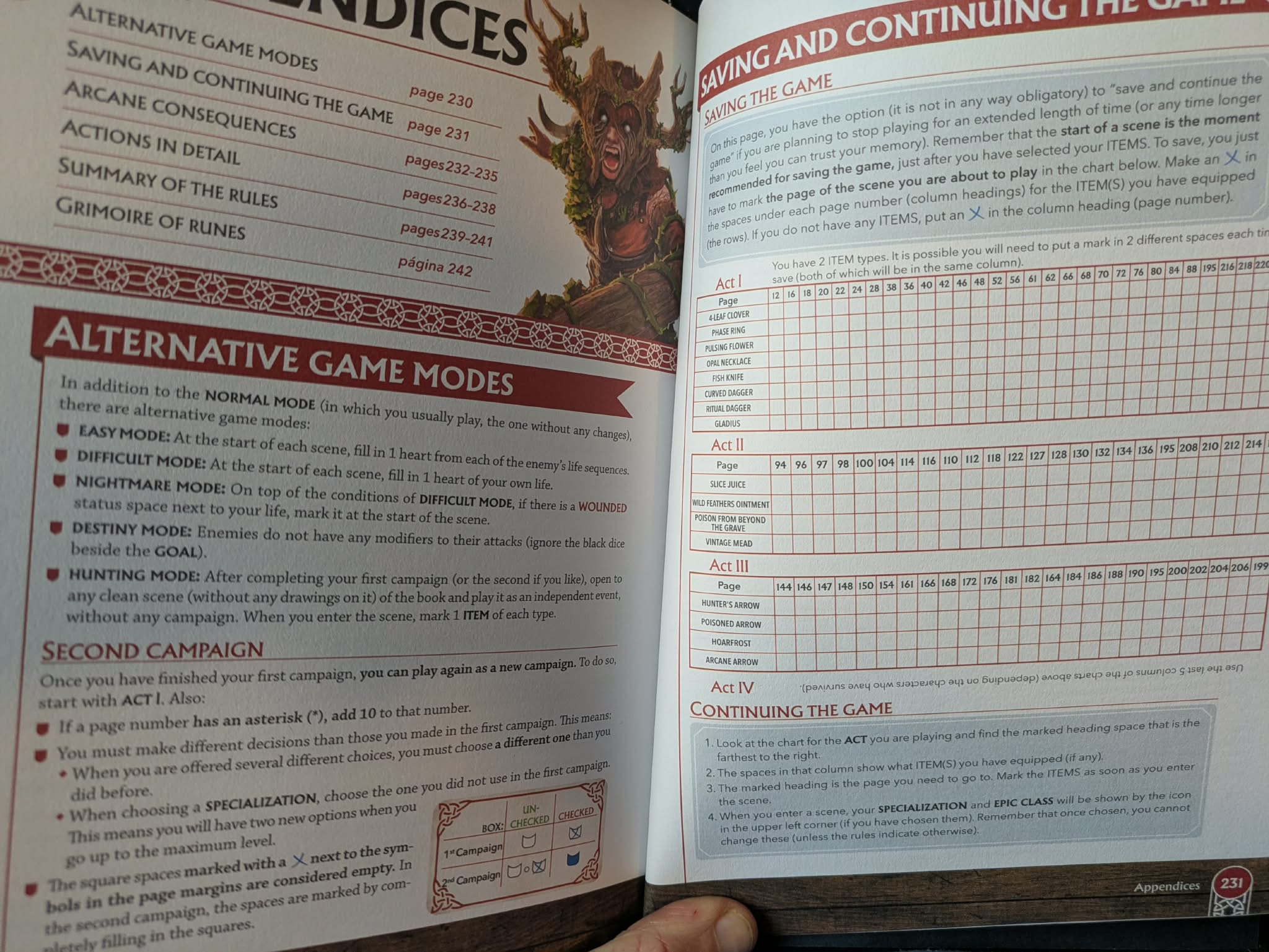 The larger problem comes from a Save page in the back of the book, asking you to mark off items and choices. It would be nice if this were a separate resource or some kind of log, just because of the amount of material you’re going to be tracking. There are a lot of items and page markers to track, though I give it credit that the vast majority of this is contained within the book itself.