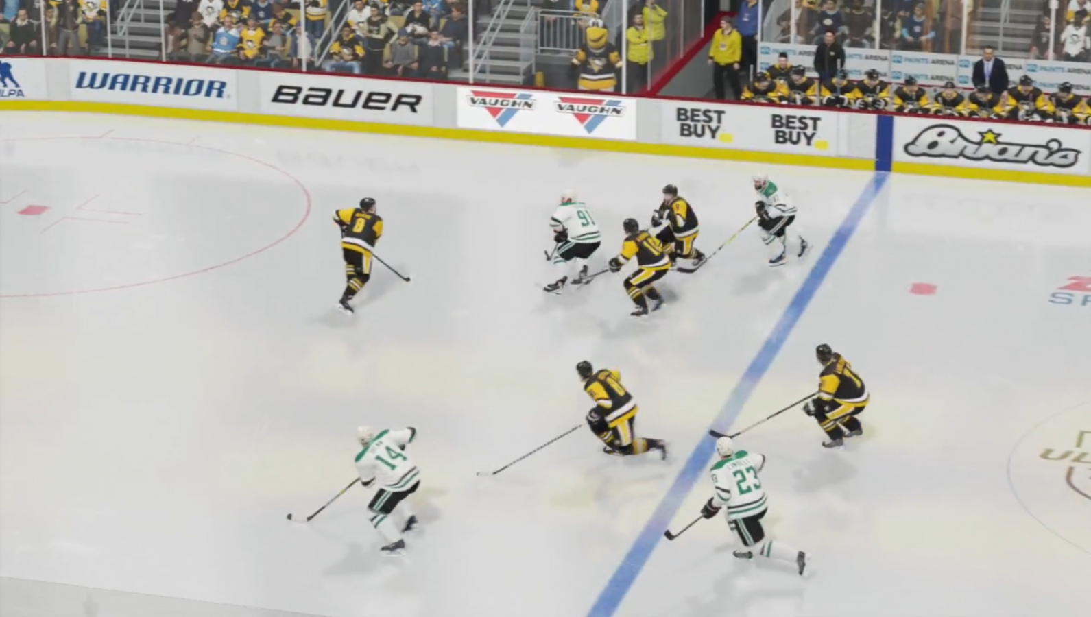 The gameplay itself is very smooth and fluid. I never really had any issues with players not performing the actions I had input or having too much delay. The closest to that is when another player would intercept or interrupt my actions, but that makes sense. Graphically, the players and arenas look good, and the soundtrack is pretty neat as well. The music on the menus is refreshing and the sound design during games feels natural, as if you were watching an actual hockey game.