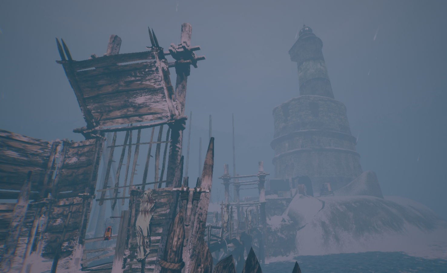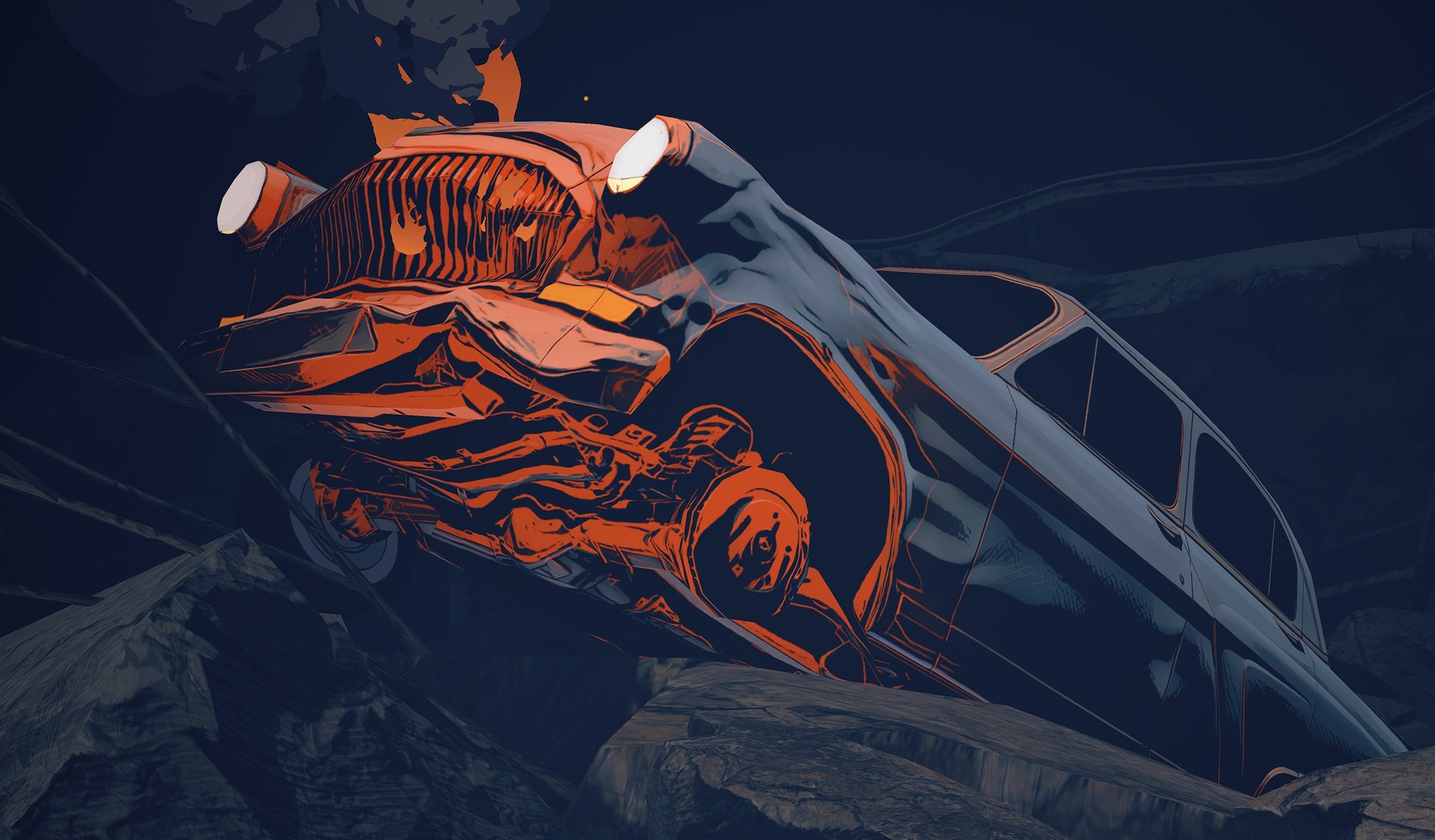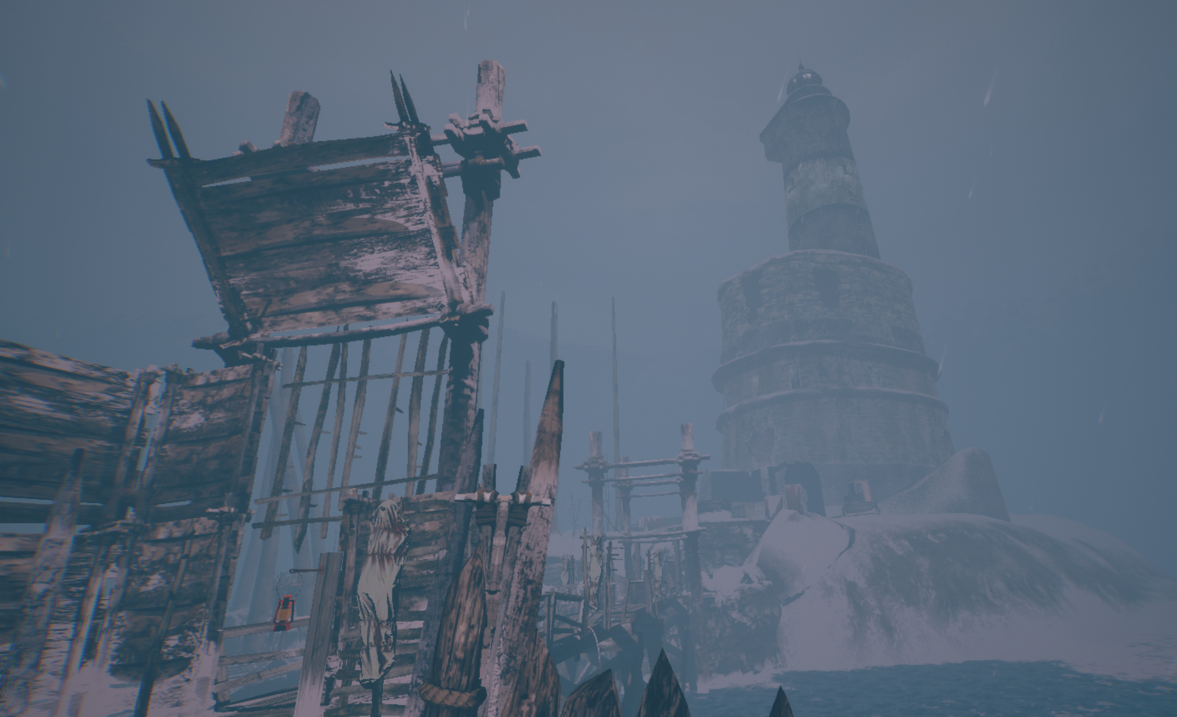 Let’s start at the beginning. It’s quite clear from the get-go that you’ll be doing plenty of reading since the first instance of the game involves you reading a prologue from a graphic novel. In it, your father tries explaining why a lighter he’s given to you is so important, but as he’s doing so a mysterious figure steps in front of your car. You swerve, but the car veers off the side of the road. As you awaken, your father is nowhere to be seen, and there’s a blood trail leading off into a cave. Above, you see the same mysterious figure, staring at you before it disappears from sight. From here, all you’ve got is that lighter your father spoke about, and nothing else. So, you head into that cave, flicking your lighter on to be able to see your surroundings. Here, the embers from the lighter’s flame will light the direction you’re supposed to go, and as you fumble through the cave you’ll stumble onto a hospital room. A single, lowly figure stands in front of a machine, and as you pass a concrete pillar he’s out of sight. In his place, a red doll hovers. The in-game text (in a comic book style) tells you to burn it. And you do so. Afterwards, your lighter will go out, and once again you succumb to the darkness. Flick that lighter on, and AHH! Jumpscare. Though those ones are my least favorite, and I knew it was coming, it still got me. After that, you’re in the wild. A cold frontier lays ahead, and you’re meant to keep going.