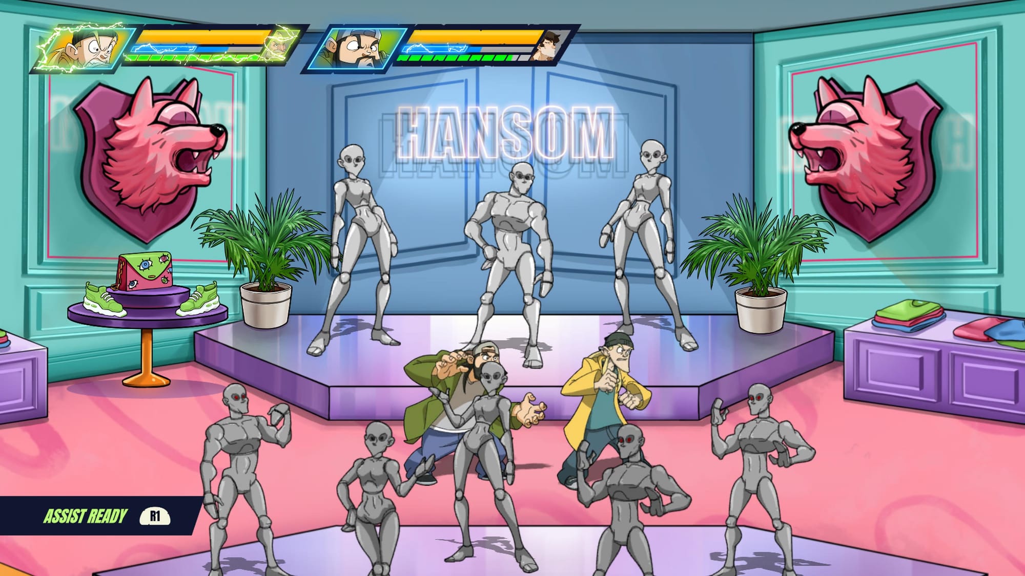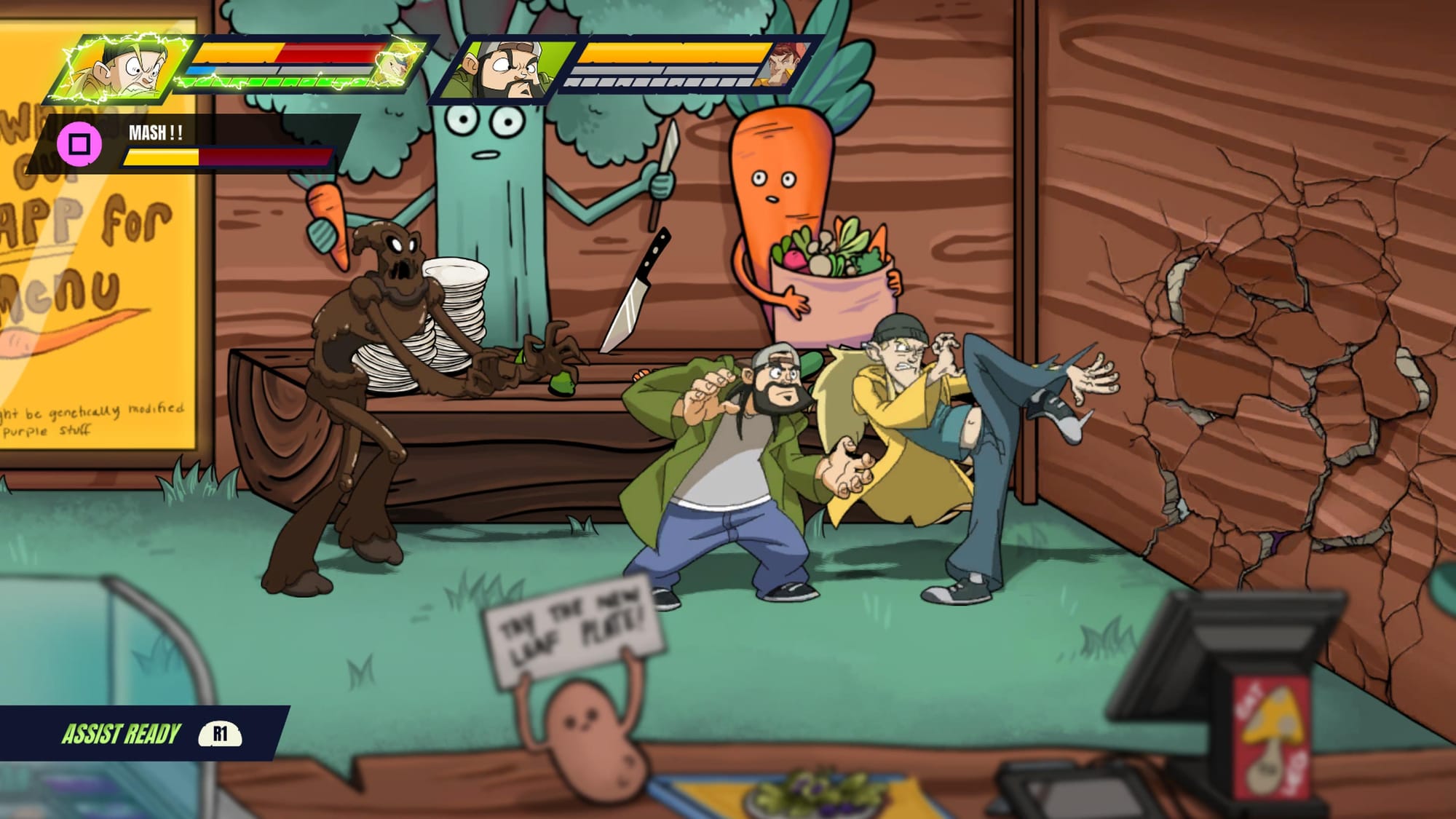 As you defeat enemies, you’ll fill up an assist meter, which, when full, allows you to call on various characters to hop in and provide support either by means of a powerful attack or even by providing healing. New assist characters are unlocked as you progress, but a few can be missed, so be sure to scour each level and set piece before moving on. Both Jay and Silent Bob can have a different assist character assigned to them, and you are given the opportunity to swap assists before each level. I highly recommend testing out each assist as you obtain them, learning how their function can help you out in a pinch.