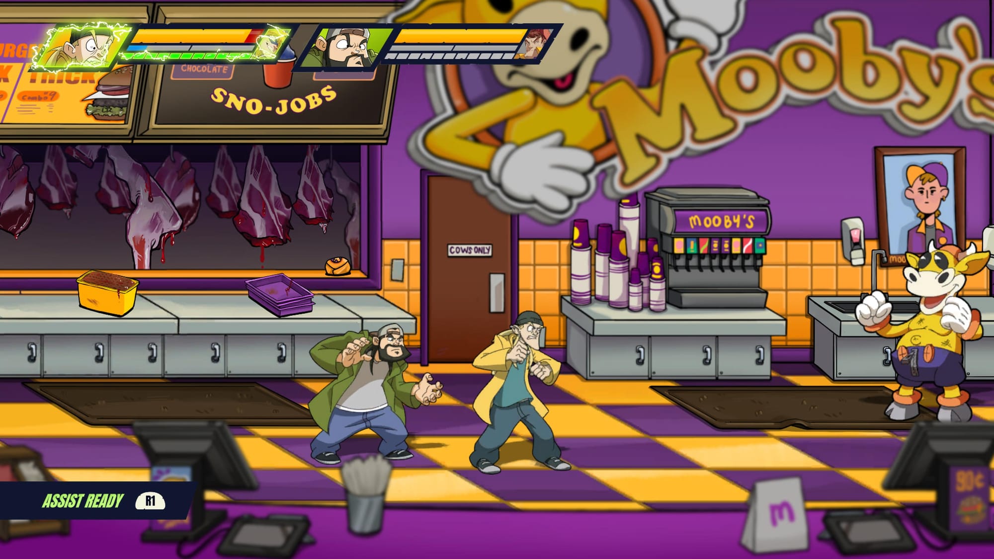 The bare-bones story is just an excuse to string together countless quips, cameos, and boss fights pulled from Kevin Smith’s film world, and I'm happy to report that it does so wonderfully. As a beat ‘em up, the core gameplay consists of walking right and beating the life out of anything that crosses your path, as expected. But what wasn’t expected was the focus on combos, assist, specials, and the unique fighting styles of each character to overcome the often overwhelming odds.