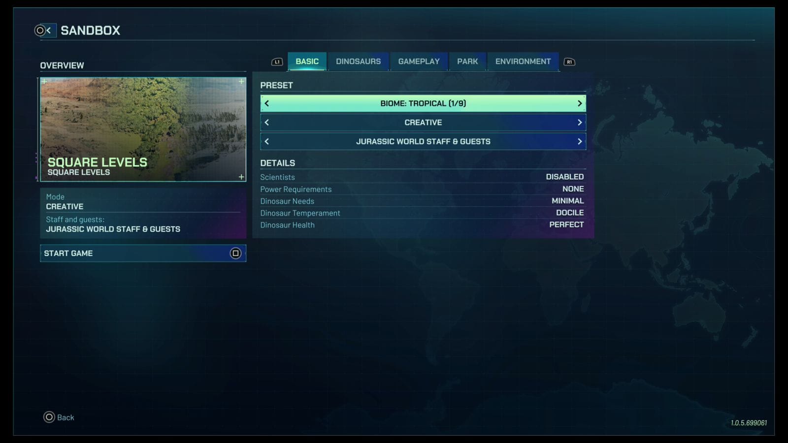 Sandbox mode is simply put, the best it has ever been in the series. Not only do you have more control over how your game starts, but there are so many options for you to change. For just the dinosaur section alone, there are so many options for you to make your sandbox experience comfortable. On the Gameplay side of things, you can go as far as turning off Expeditions and fossils, and even Contacts. I can’t lose every option, but you get the gist. Each tab offers you full control over every aspect of your park. You can make it as easy or as hard as you want it. For example, I play with low Income Tax, High but not Unlimited Cash, and the Guest Count Target set to Jurassic. There are so many maps to choose from, too. When I am writing a guide, I play on flat maps, but there is a specific map (that I won’t spoil) which I’ve played on that is my favorite map in the whole series so far.
