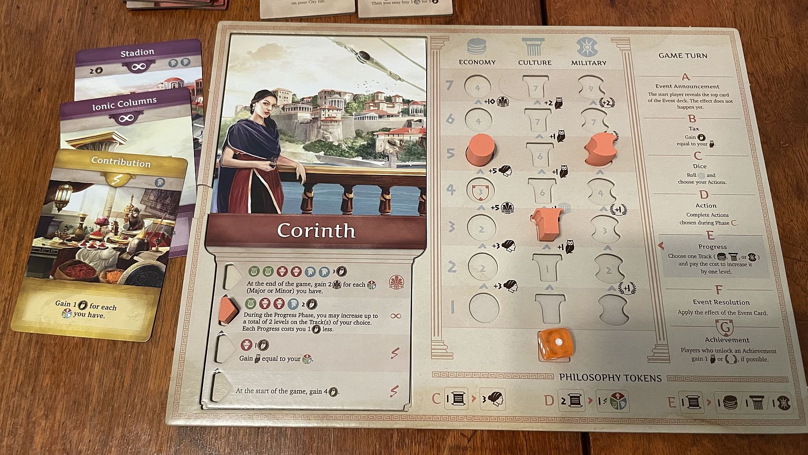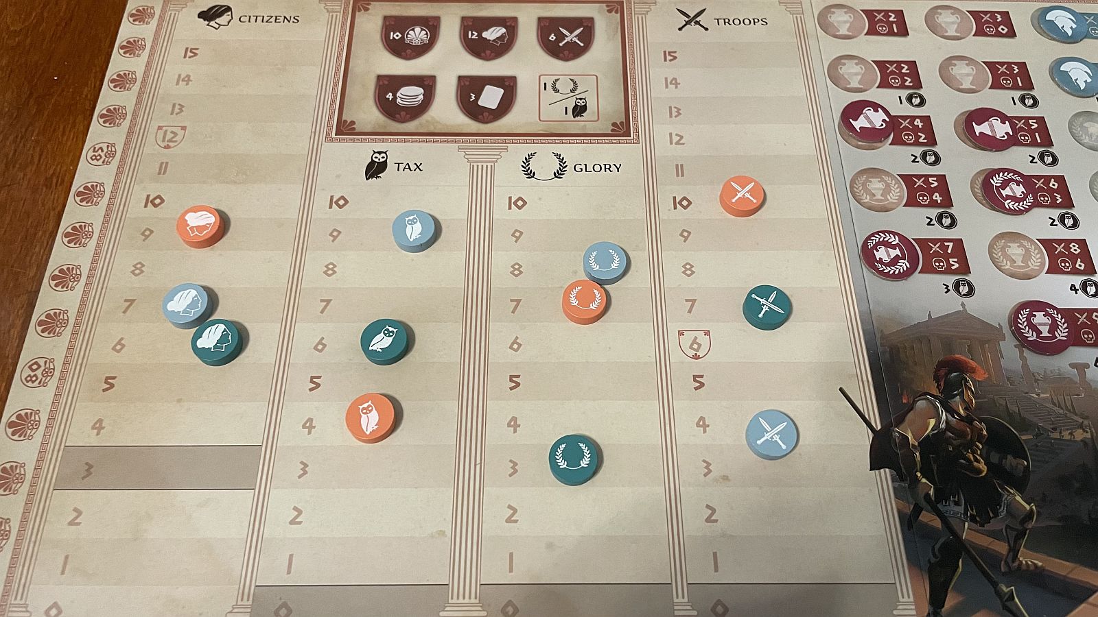 Citizens are a resource in the game that you acquire through one of the actions and through just moving up one of the seven different tracks. If you don’t like your dice values, you can simply spend Citizens to increase the value of the die. That would be fine if Citizens ever felt constrained but there always seems to be plenty of them. It was rare while playing Khora to ever not be able to do the exact action that I wanted to do. Either the dice worked out since you have an equal chance of all 6 results anyway and most actions are equally as good as others or else I just spent Citizens and still did what I wanted. The entire foundation of the game is non-existent.