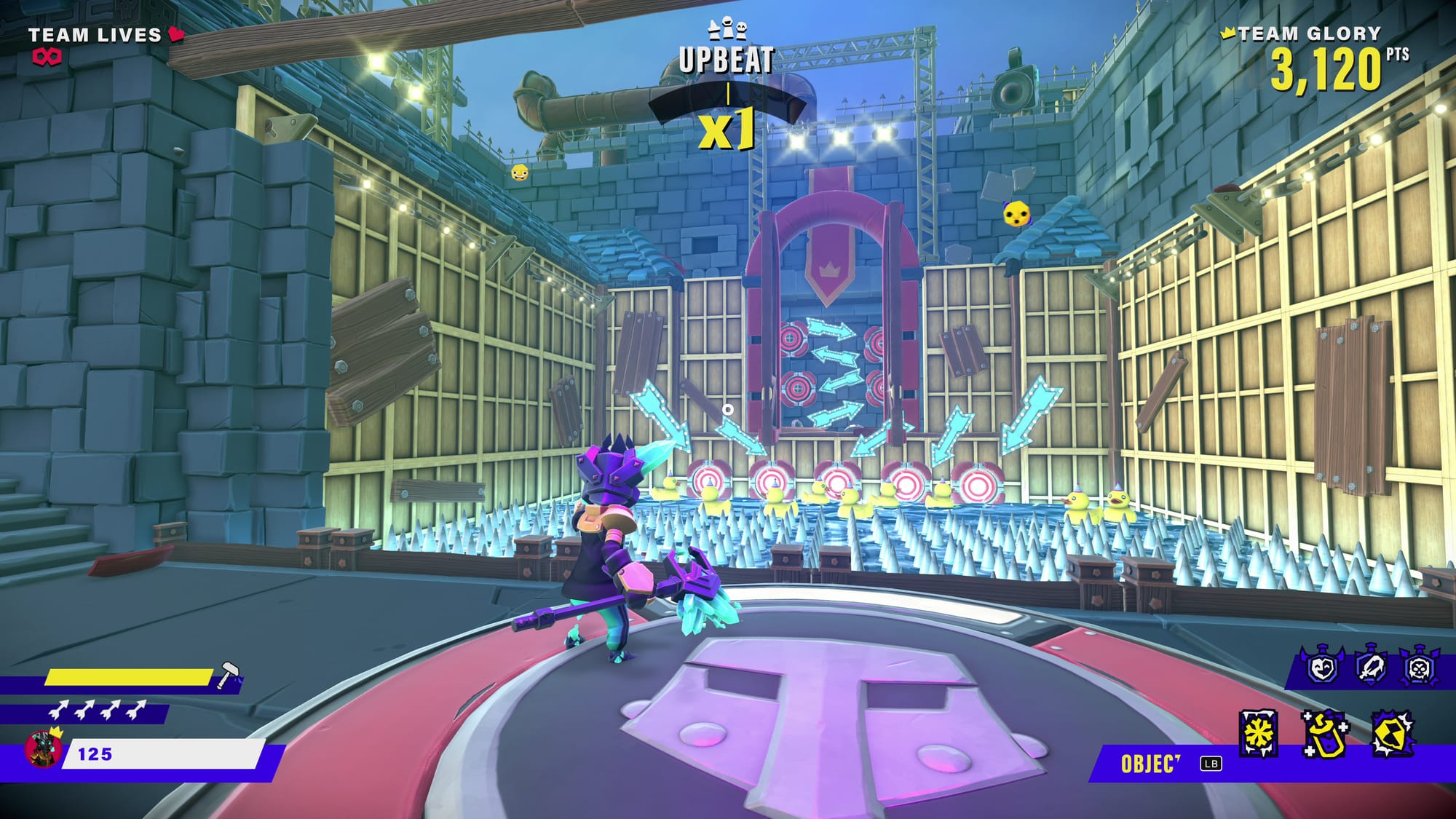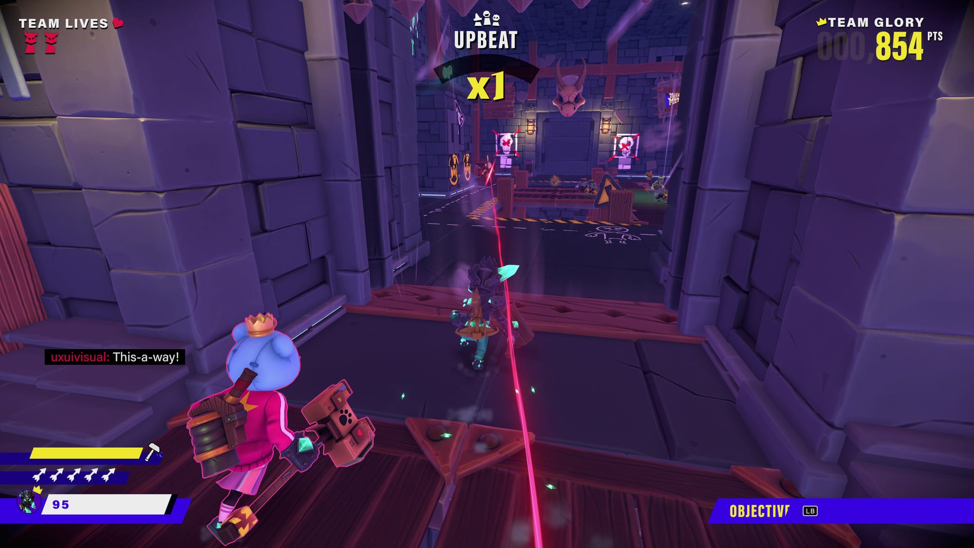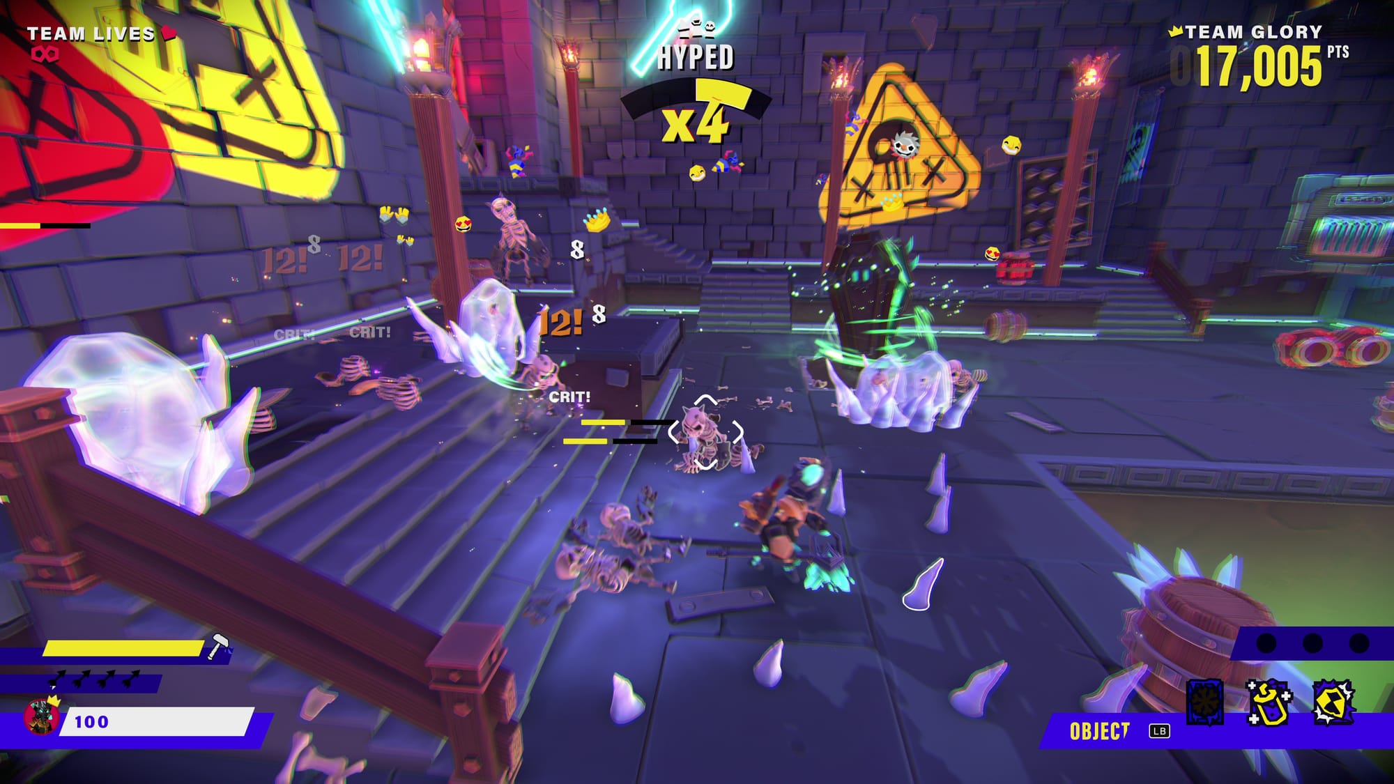 King of Meat's combat feels good. You can unlock several weapons, and the hammer was my favorite. Hearing its crunch when slamming skeletons and seeing the floor crack never got old. Shaking my hips in place to tee off with a golf swing is pure fun. Other weapons feel similarly satisfying, but excitement fades once hordes of enemies appear, especially armored enemies.