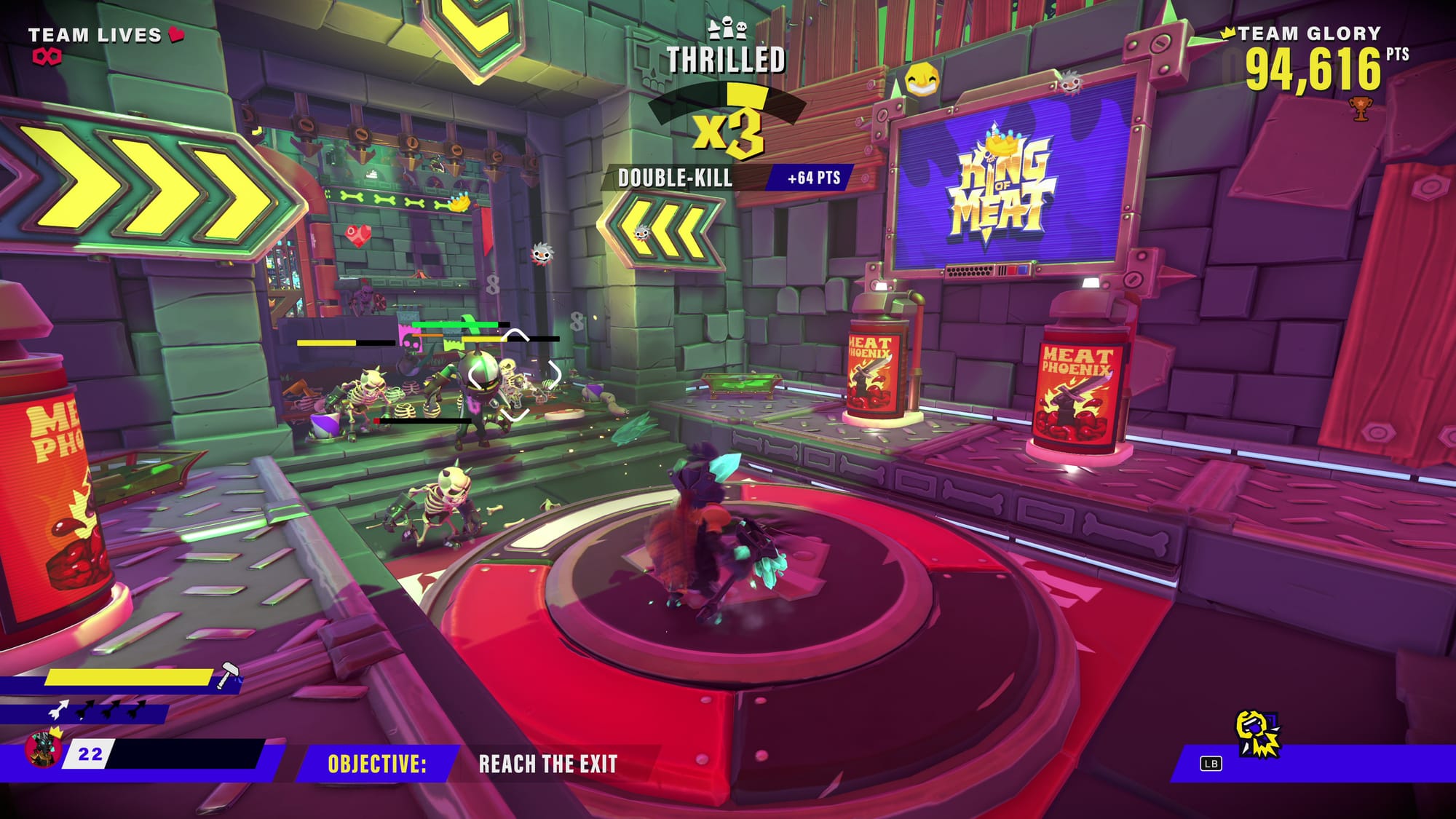 Glory Moves are another helpful tool. Consider them King of Meat’s ultimate moves. Some freeze enemies, some heal over time, or unleash a satisfying projectile belch. They’re very useful at higher difficulties, but neither Tonics nor Glory Moves fix the imbalance caused by armored enemies.