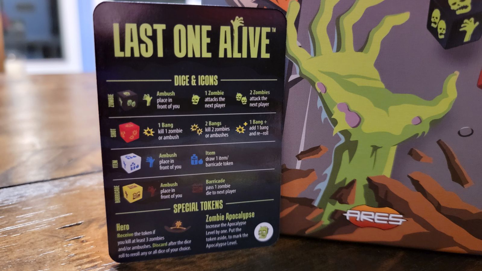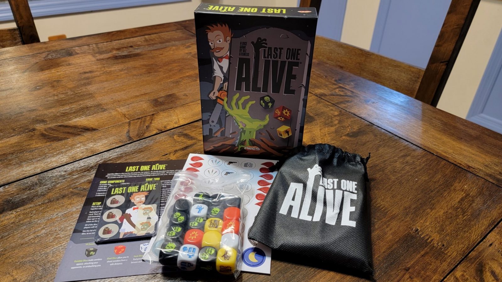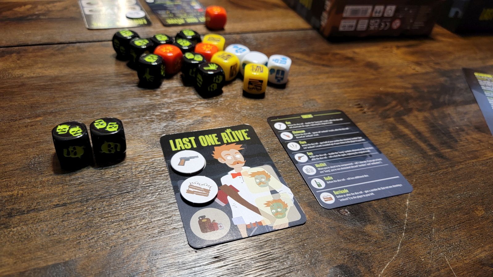 Last One Alive is a fast-paced, incredibly fun 2 to 5 player experience in which players compete to survive an ever-growing zombie apocalypse by being complete jerks to each other. Based around the use of dice, players will find themselves fighting off zombies, gathering supplies to help against future attacks, and ruining other players’ turns by using them as zombie fodder.