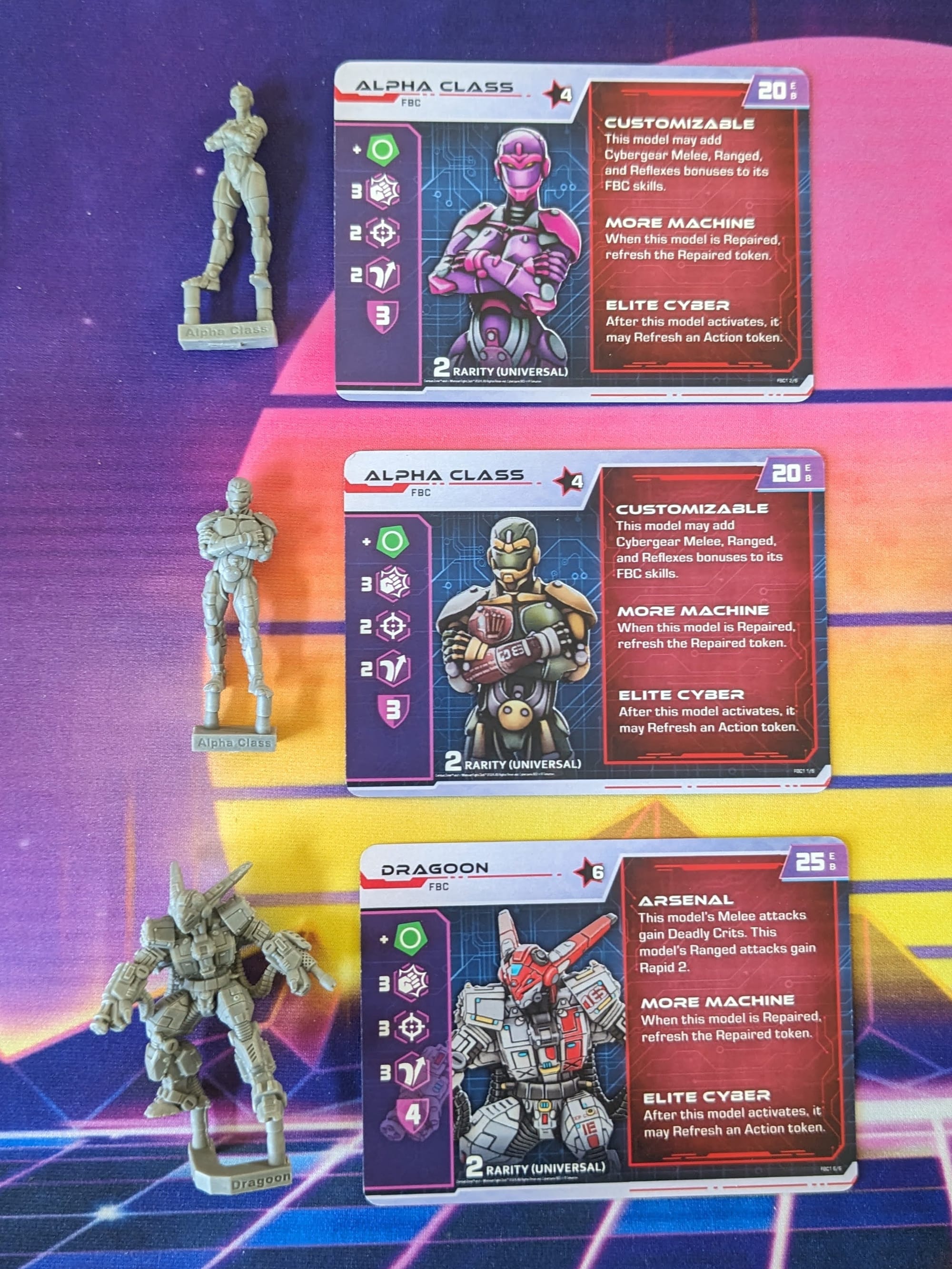 For the FBC Set 1, I wanted to match the card/box art as closely as possible, using the Slapchop Method (below) to quickly get them painted. Since these figures are upgrades, and may not always be used in games, I wanted to make them look like the art but not overdo it.