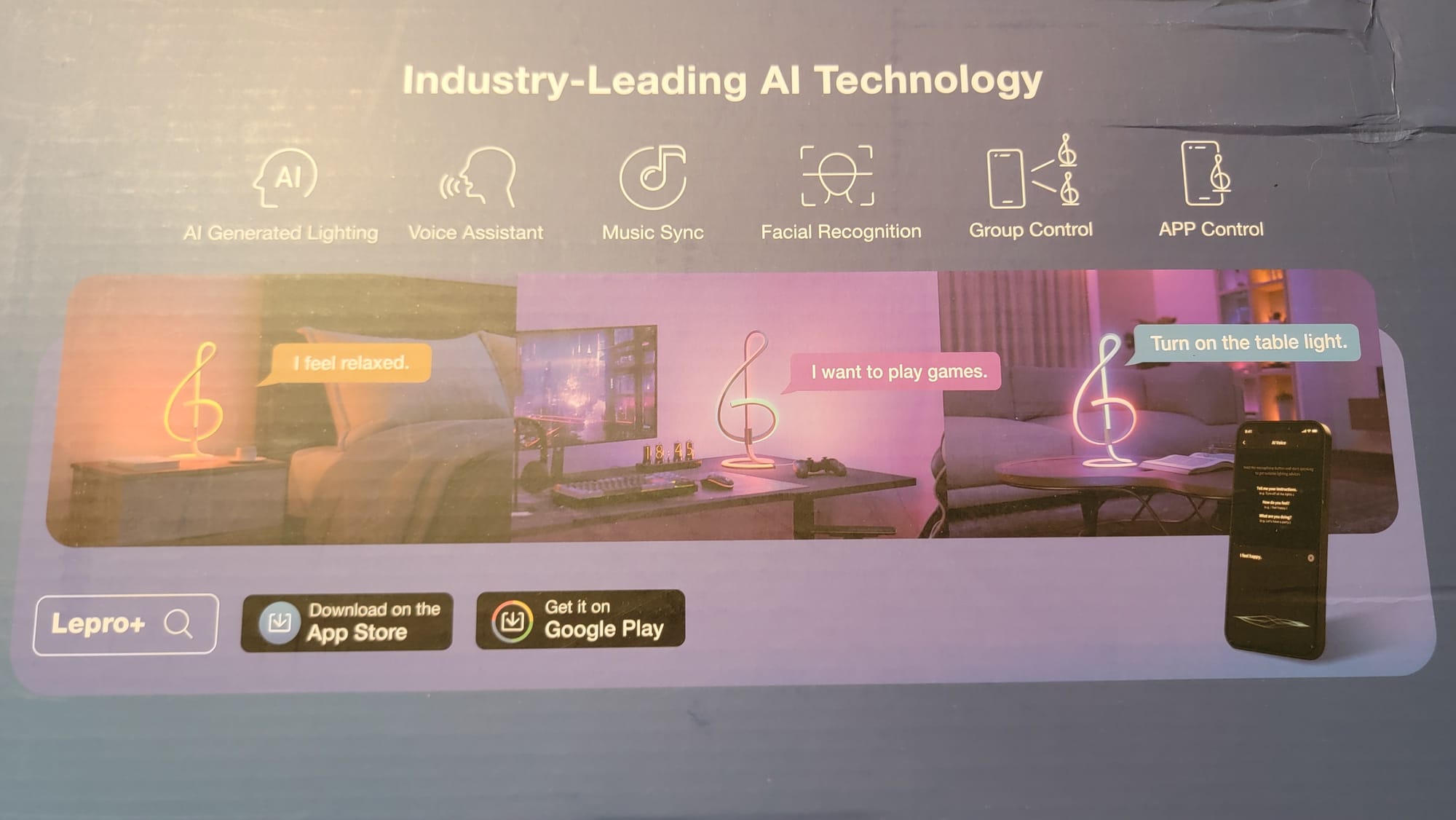 Assembly is easy and involves only three pieces: the base, the spiral, and the power supply. All you need to do is merely insert the spiral piece into the base and then insert the power supply and you’re ready to go! Out of the box the light will turn on and work but will be stuck on a basic lighting scheme. To really utilize the Lepro AI Smart LED Table Light’s features and to take advantage of the thousands of different lighting patterns available you need to download the Lepro app and set up an account.