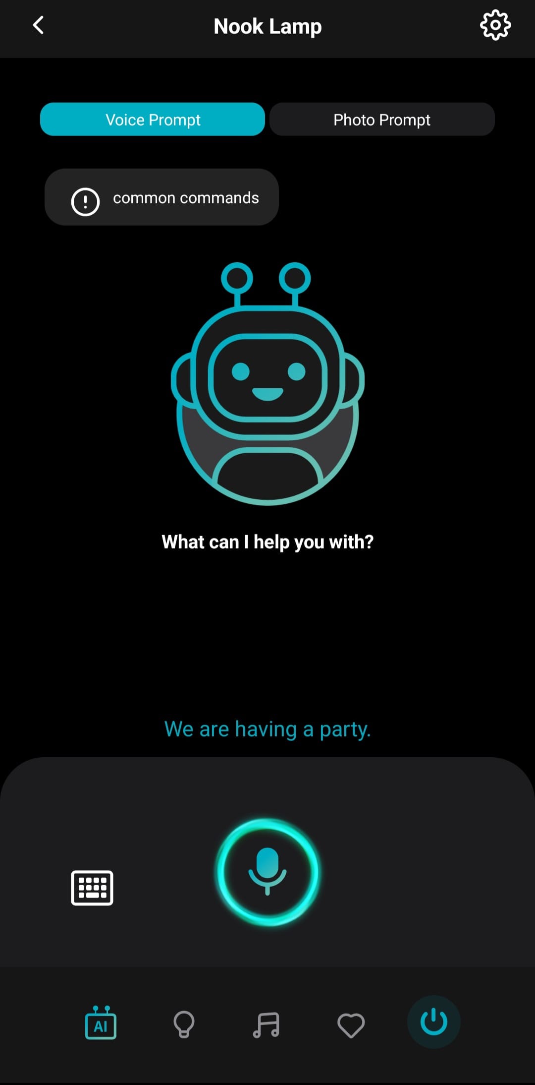 Now, I know AI isn’t everybody’s cup of tea, but its use here is unintrusive and basic, and can be ignored altogether if you so choose. To use it you simply press the mic button and state how you feel, and AI will match your mood with a lighting scheme and will also provide you with a long list of similar lighting schemes in case you don’t jive with the theme it first chose. For example, you can say “I feel happy” and the lamp will turn to a bright and colorful pattern, whereas saying “I feel angry” will turn the lamp to a dark red and pulsating pattern. It’s simple, and the patterns it chooses aren’t always what I feel would go with the emotion I stated, but it works well enough and I enjoyed being given the additional list of patterns to scroll through and test out.