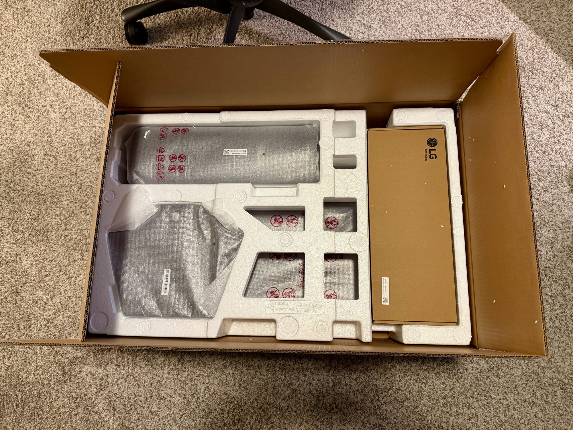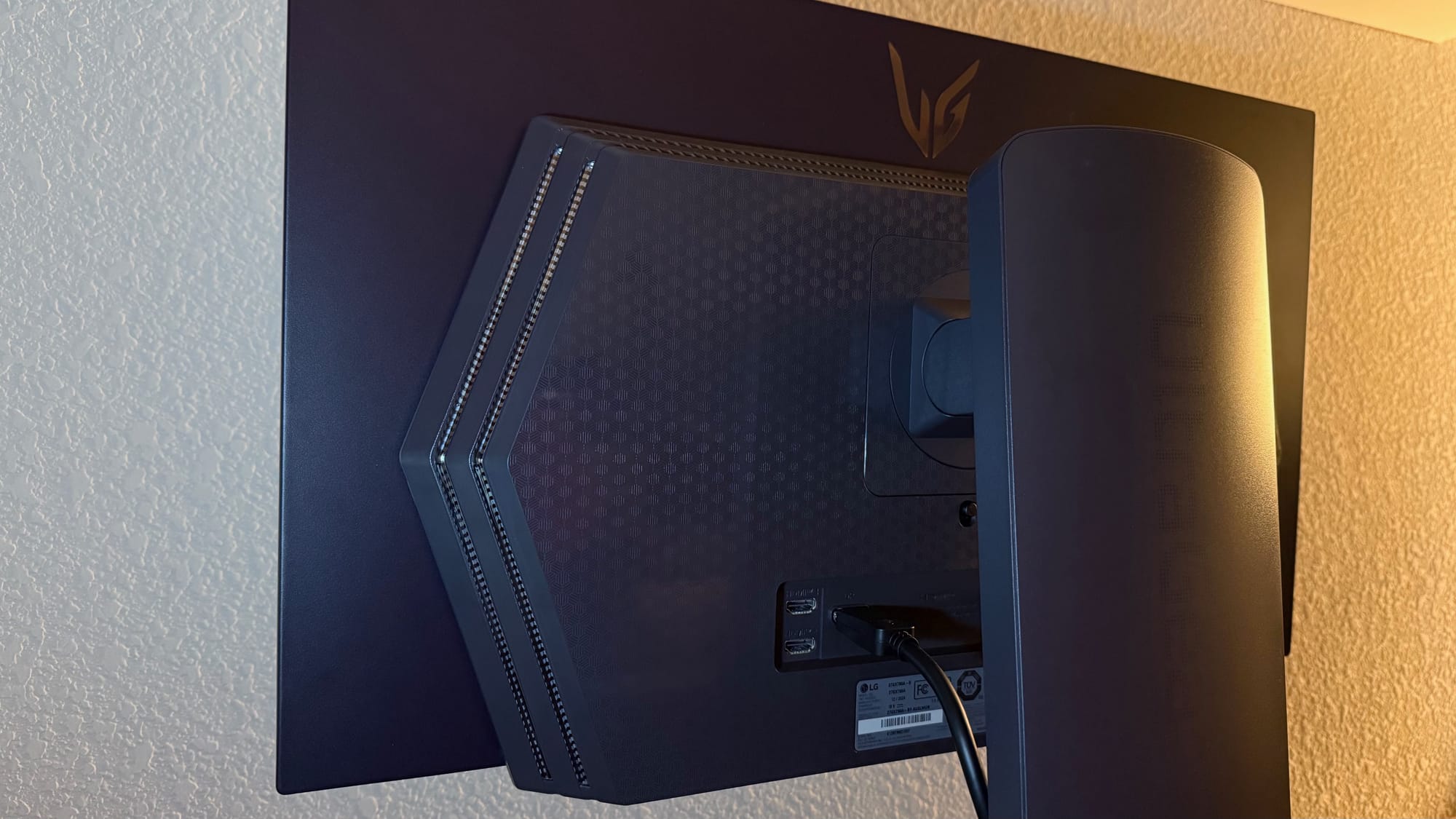 Pulling out the stand itself was a surprise; it's HEAVY (but in a good way). Coupled with substantial anti-skid pads on the base, [slaps the top of the monitor] this monitor isn't going anywhere. It feels incredibly secure and resistant to accidental bumps or slides. The hexagon (which is the bestagon) base is a welcome design choice; many previous LG monitors I've used had stands that extended far into the desk, practically begging for a monitor arm. While an arm remains my preferred setup, I wouldn't be upset at all if—for some reason—I was forced to use this default stand.