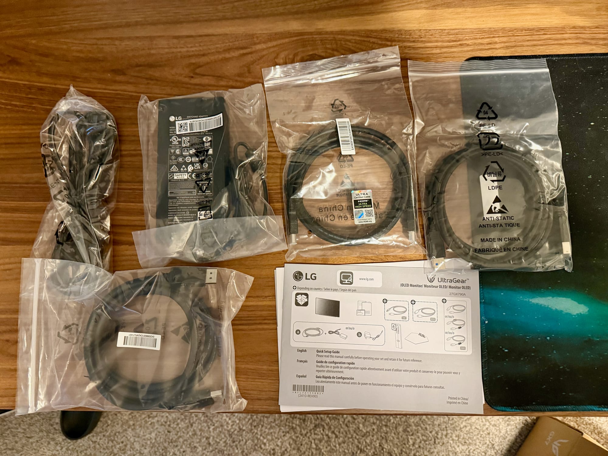 The monitor arrives well-protected within a well packed box, cushioned by generous amounts of protective foam. This attention to detail immediately inspires confidence—it feels like this monitor could withstand some serious rough handling during shipping. Included in the package are all necessary cables: power cord, brick, USB-out cable, HDMI and DisplayPort, along with the standard instruction manual.