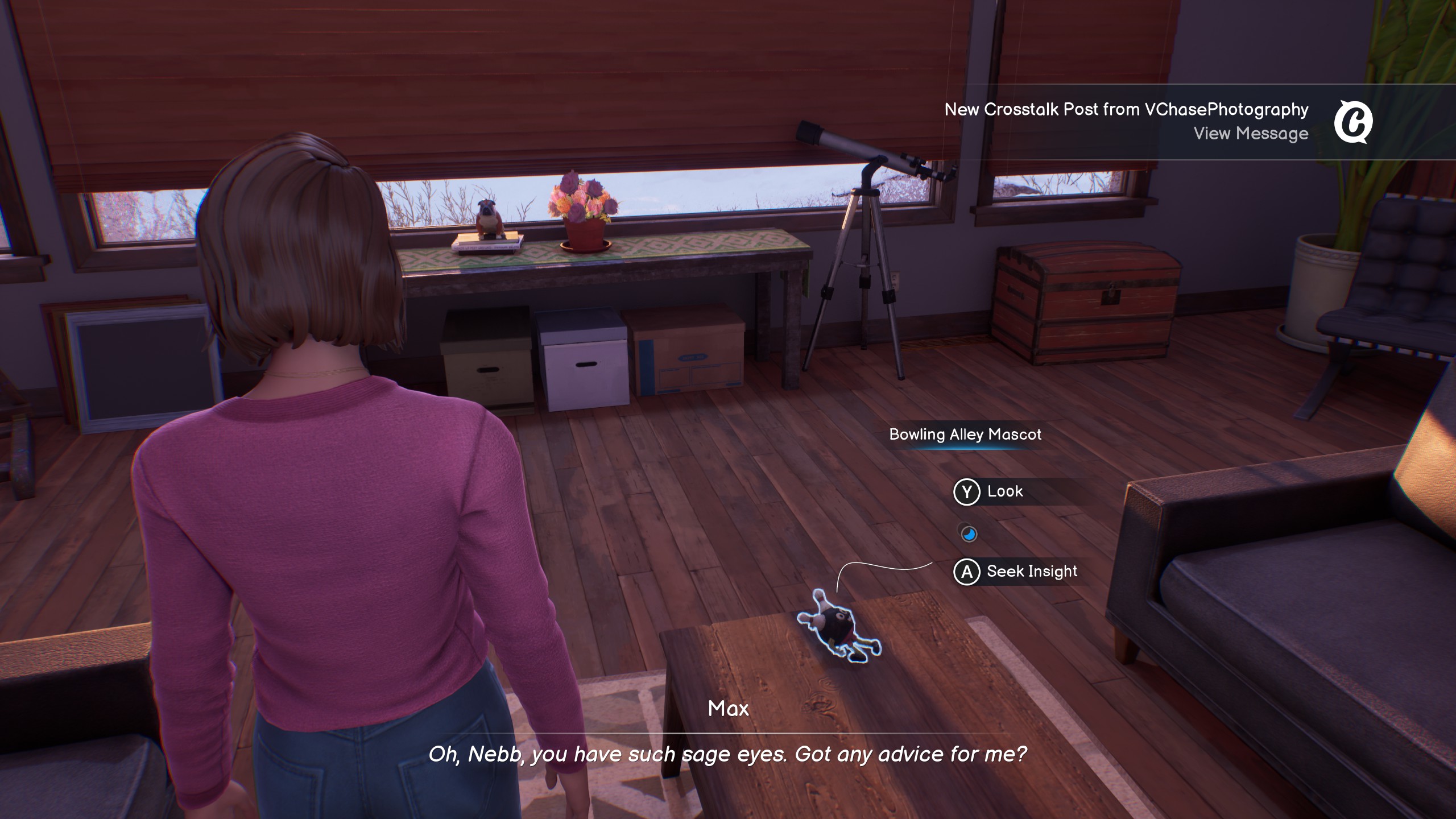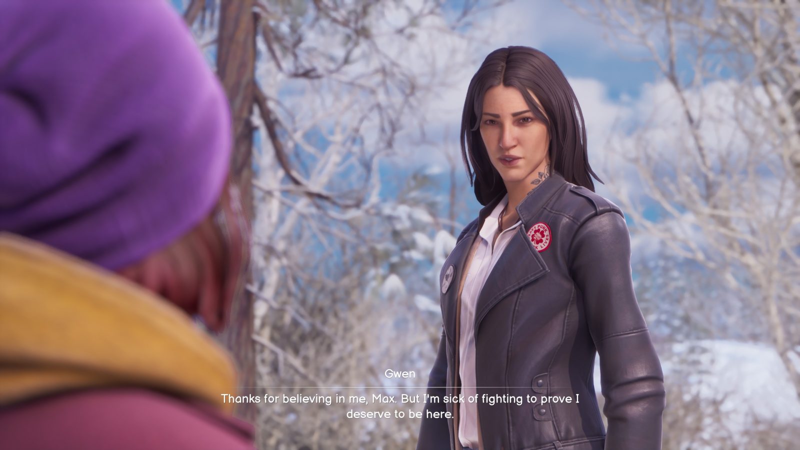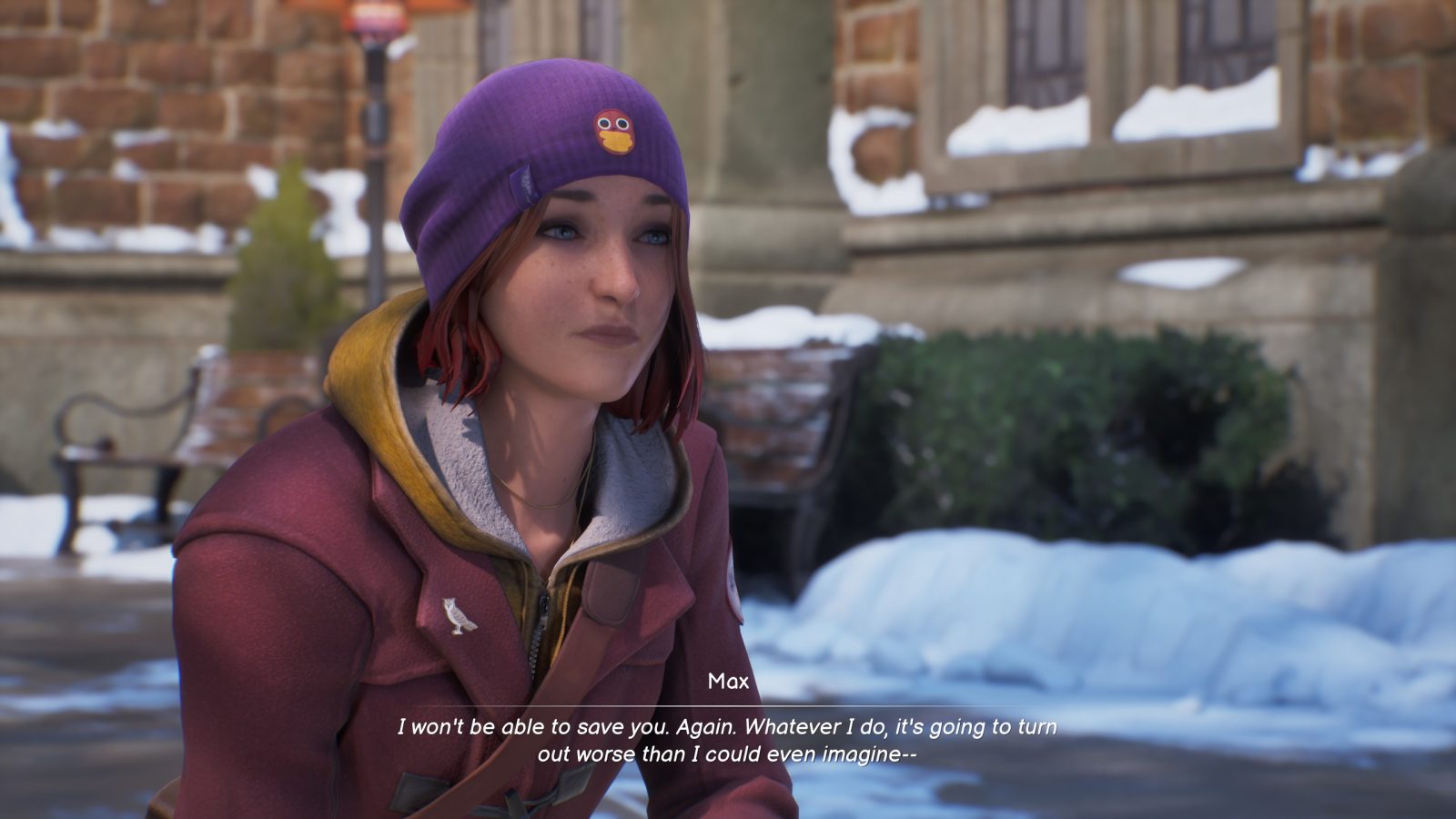 As for the soundtrack, it is stellar across the board. While none of the tracks outside the menu music stuck out to me, I remember the pockets of moments they were utilized in. Despite investigating a murder, there is a soothing ambiance in the tracks. The melancholic, yet nostalgic strums of a guitar. The soft, lonely keys of a piano. Throughout each chapter, there are optional spots where Max can sit down and reflect on everything that came before, and what’s yet to come. The backing vocal tracks ground the mood she feels at that given time, lost in her own thoughts. It gives warmth as she catches her breath, while also being an ever-present reminder of the cold snow that housed the corpse of her friend.