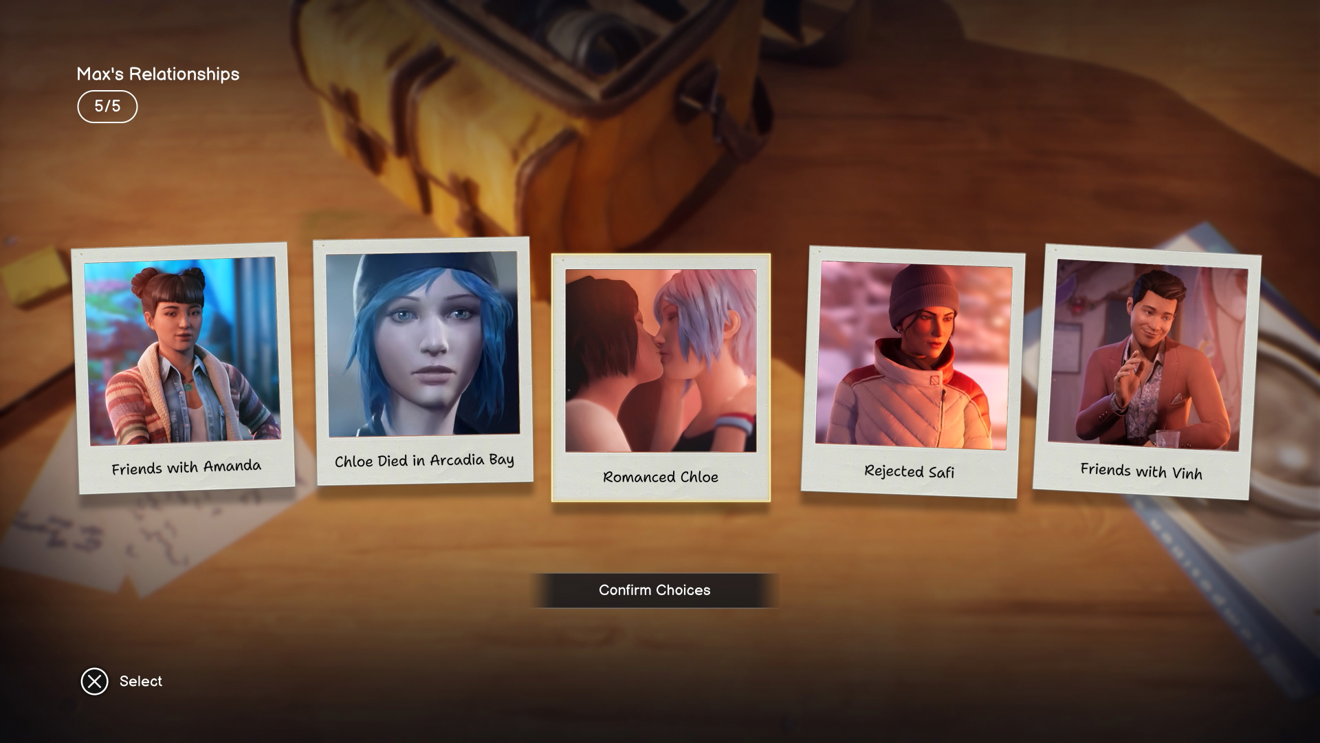 Adam Moreno: I chose to follow the timeline where Max chose to save Chloe over Arcadia Bay, saved Safi, and didn’t romance anyone in the Double Exposure. The big moments were when Max was first freaking out that Arcadia Bay was “never destroyed” and Chloe had recently spoken to her mother. Throughout the story, the fact Arcadia Bay was back was brought up a few times, but the biggest was when Safi tried to get Max to do something by saying they could leave for her recently non-destroyed home for “closure.” After hearing how the reaction went with Chloe “coming back from the dead,” I think that choice seems to have more of an impact overall than letting Arcadia Bay be destroyed. I really enjoyed the relationships between Max, Chloe, Safi, and Moses.