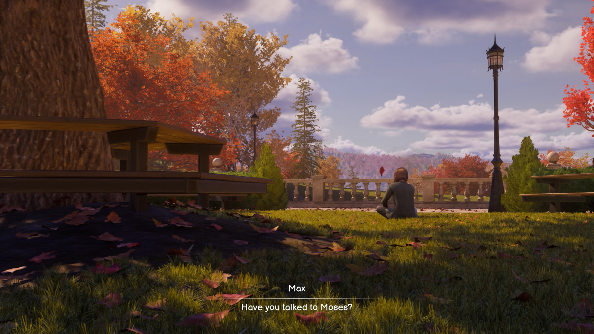 Sadly, it’s the visuals where the presentation falls apart. On the whole, I don’t mind the art style lifted from Double Exposure. To me, the uniqueness of the original’s painted sheen translated into a realistic style well. Would I have preferred a more direct expansion of the first game’s visual identity? Yes. But for what it is, the current look still retains the vibe of its debut title. In particular, the fall season the game takes place in makes for gorgeous autumn scenery with rays of sunlight shining through the orange leaves. It provides a fresh look following the school’s winter wonderland of Max’s previous adventure.