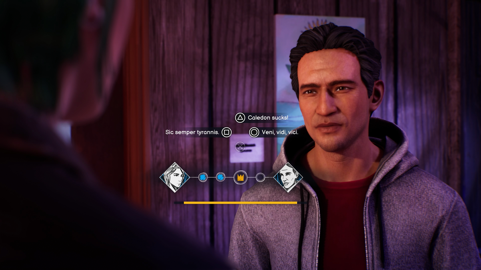 In contrast, Chloe’s lack of supernatural powers means she has her own unique gameplay gimmick called Backtalk. Although these occur once in a blue moon, I really dug when they did. This has the mischievous one of the duo engaged in heated discussion with an opponent, requiring her to correctly answer questions multiple times to succeed. These answers can be gauged by exploring the surrounding environment, or paying attention to current or prior dialogue exchanges. It is an awesome way to integrate the mild gameplay of the genre into the story, giving stakes through an interactive framework that tests the player’s comprehension skills.