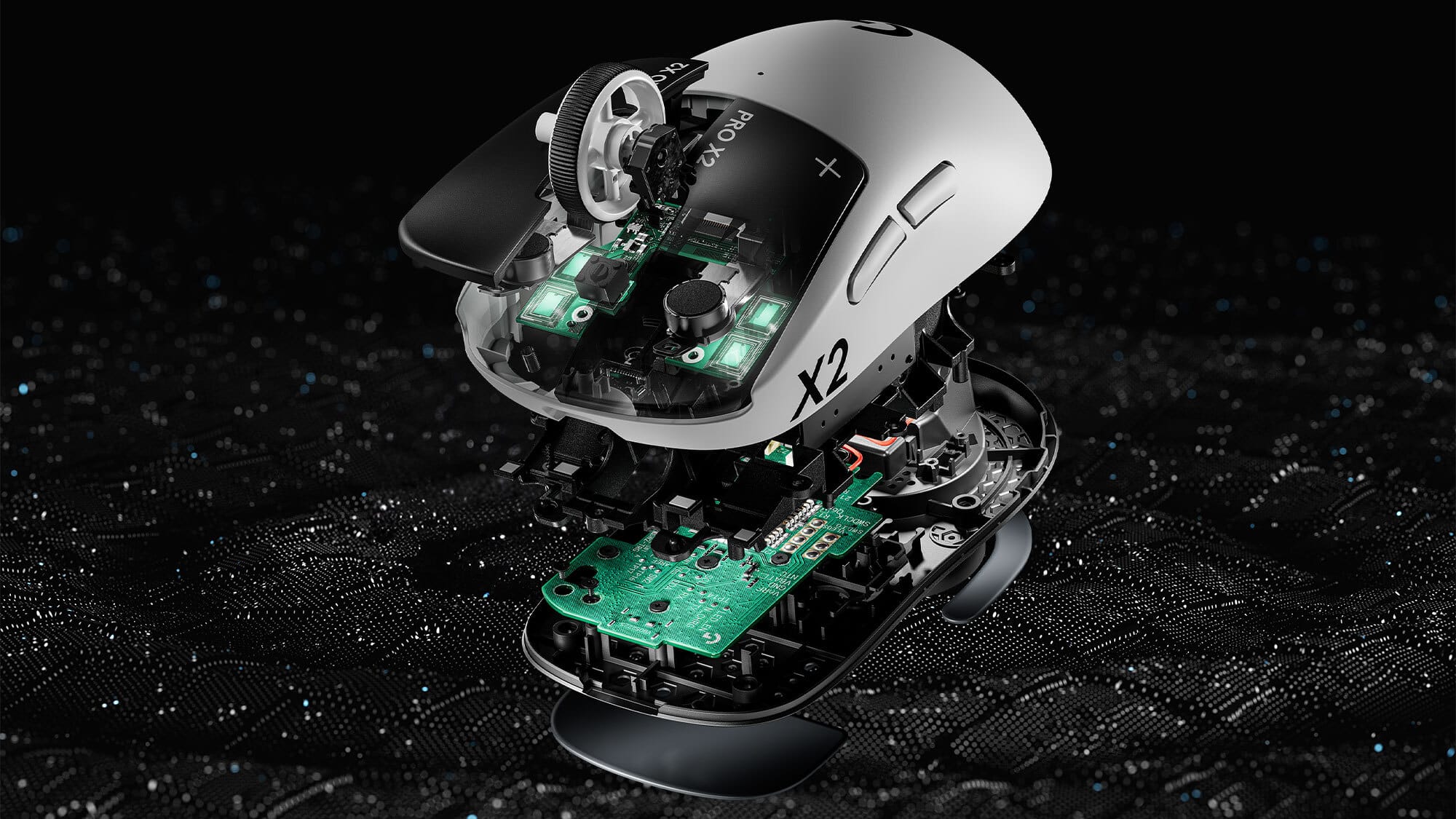 Now, I know it's expertly designed, but how does it look? Well, to start, I like the black and white color palette of the device; it allows the mouse to blend into the average desk set up. The Logitech logo is of course front and center, accompanied by some Pro X2 decals. But beyond this, the actual look of the device isn't anything special. No LEDs, bright colors, pictures or sprites; nothing but pure performance. I don't see this as a super bad thing, as some people prefer their tech in clean black, white, and gray. But there are also those who like their mouse to have a little more personality, which is completely understandable, as it is your setup, after all. For the Pro X2 Superstrike, though, it's function over form.