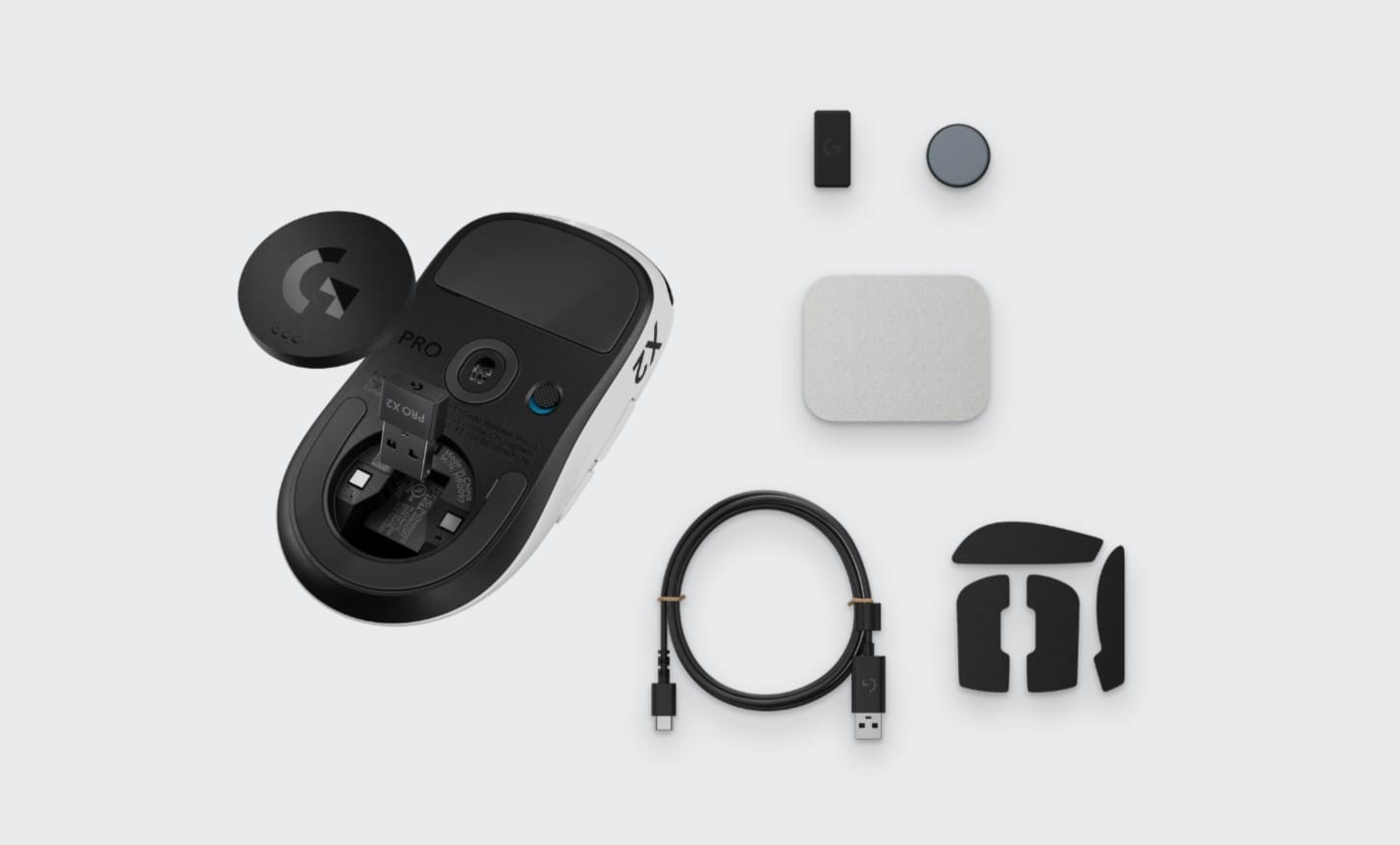 The Pro X2 Superstrike comes with a few things when unboxed: the mouse itself, a USB wireless receiver, a receiver extension adapter, a USB charging cable, grip tape, and user's manual. I love when a mouse comes with grip tape straight out of the box, and it seems like it's become more and more common nowadays. The adapter is also a welcome bonus, as the option for extra versatility never goes unnoticed. In terms of out-of-the-box hardware, the Pro X2 Superstrike has just about everything you need to jump straight into your favorite games, no supplemental purchases required.