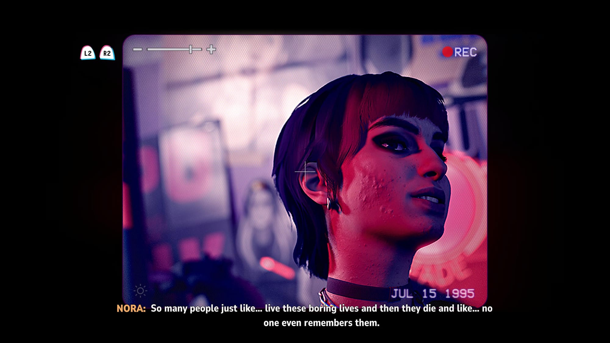 The 90’s have such an iconic vibe for so many that just the opening for Lost Records: Bloom & Rage sets up exactly what you should expect from the game. As you boot up the game for the first time you’re greeted with the VHS static scrub at the bottom and top of the screen like you’re placing that VHS tape in the player for the first time on Saturday morning before breakfast. As the title cards move, you’ll see a familiar warning similar to the FBI warnings about no piracy. This sets the tone QUICKLY as we’ll be playing in two time periods. Current day and then flashing back to the summer of 1995.