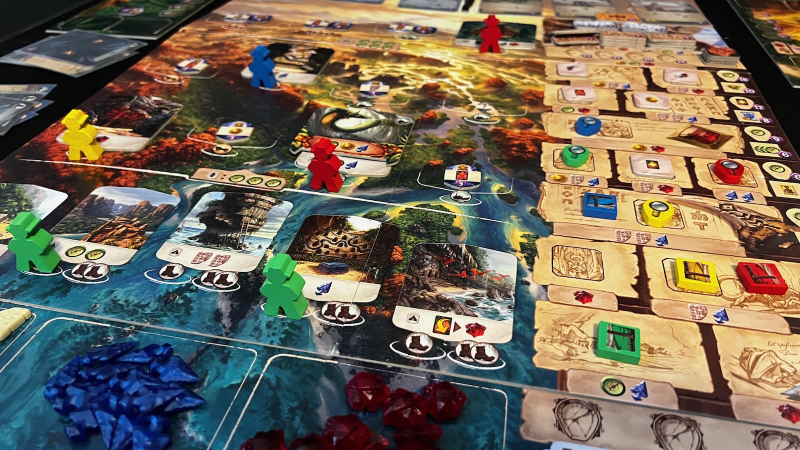 Created by Min and Elwyn and distributed by Czech Games Edition, Lost Ruins of Arnak blends the classic worker placement style of play with deck building and resource management. You are an explorer sent on an expedition to a newly discovered island. Over the course of 5 rounds, players take turns to explore new dig sites, overcome island guardians, and research the mysteries of the temple to score endgame points and rise above their rivals.