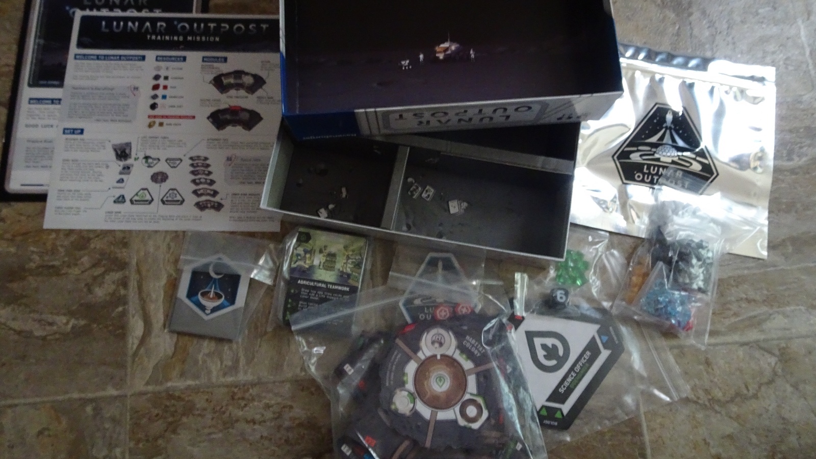 The basic theme behind Lunar Outpost is fairly unique, being an astronaut on a moon base construction mission. Of course there are elements that feel familiar, such as being on a hostile planet in Terraforming Mars, and slowly making it more and more habitable to humans. Fundamentally, the game is a bit of a ‘reaction’ type game, where every turn an event card is drawn and might damage a section of base causing everyone to have to re-prioritize getting it fixed.