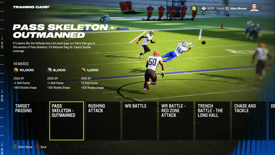 One of the biggest things that I loved about Madden NFL 24 is the inclusion of the mini-games. I’ve actually played more mini-games than I’ve played MUT and Showdown. They’re thought out, nostalgic, and help you grow your game and team! There are so many different mini-games that even the special teamers are represented with kicking and punting games. My favorite one for the XP points is Passing Skeleton – Outmanned. I got so many XP boosts for my QBs just by doing these mini-games in the focus area of the weekly strategy. These Mini-Games add a feeling of more to do in Franchise Mode than just playing games and moving around players. I think this is the best inclusion and part of Madden NFL 24.