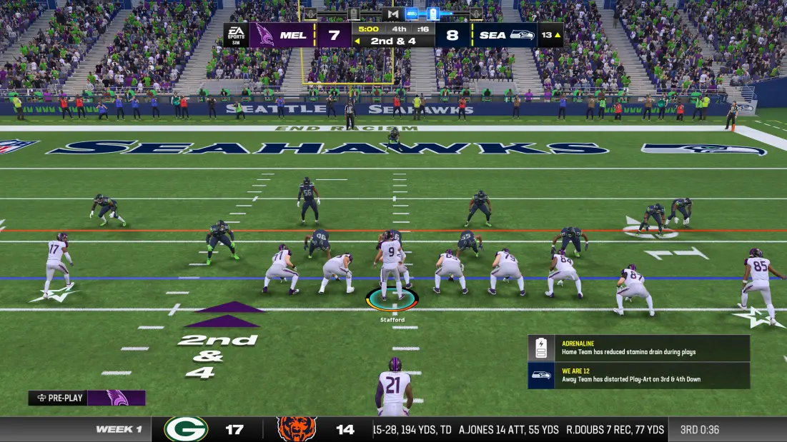 During my time with Franchise Mode, I did something I’ve never done before on a Madden game: I didn’t start as the Miami Dolphins (fins-up). I decided, instead, to use the features provided in Madden NFL 24 by taking the LA Rams and moving them to Australia and becoming the Condors of Melbourne. I then traded Aaron Donald for a 1st round pick, 2nd round pick, late round picks, and George Pickens to the Steelers, traded Cooper Kupp for a first round pick and Tee Higgins to the Bengals, and Matthew Stafford for a second round pick and AJ Dillon to the Green Bay Packers. From the management angle, this was a lot of fun for me this year. Having the opportunity to get big paydays for trading good players, while finding gems to trade for made putting together a squad quite enjoyable. In a weak NFC, I went 12-5 and lost in the first round of the playoffs, and led in the season by an impressive running attack and intense defense. After that, the real scouting began as I had a total of four first round picks and two second round picks. I found my targets and thankfully never traded around. I got a new LE, RE, HB, and TE in the first round (no QB was graded higher than second round) then grabbed my QB of the future in the second round and we were off to the races. Franchise Mode, while glitchy, is still fun to play through. However, we need to talk about the glitches…