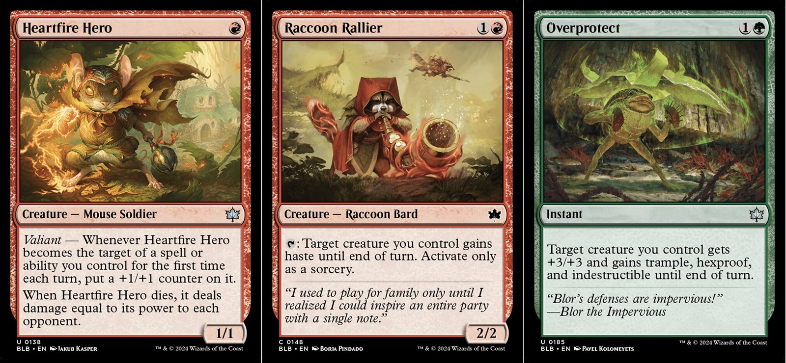 Bloomburrow is described as a typal set. What does typal mean? Typal is the term Magic uses to describe something focused around specific creature types. For Bloomburrow, those creature types are mice, birds, rats, lizards, raccoons, rabbits, bats, otters, squirrels, and frogs. Each creature type is associated with a two color pairing. For example, mice are found in white/red and are tied to the Valiant mechanic. Not every creature has a mechanic tied to them, but every creature does have a theme. It’s this design that makes Bloomburrow one of the best starting points for Magic.