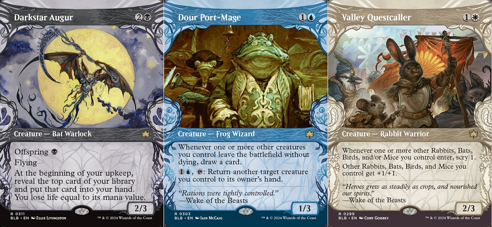 One interesting note is that The List has been removed for Bloomburrow. I don’t know if this will be permanent, but I’m a little sad as I thought The List was actually starting to be an interesting design space. If it returns perhaps the designers didn’t want it mucking around with the typal focus too much. There are still ten special guest reprints that can be in Bloomburrow packs, but they are appropriately rare and none of them are too game breaking.
