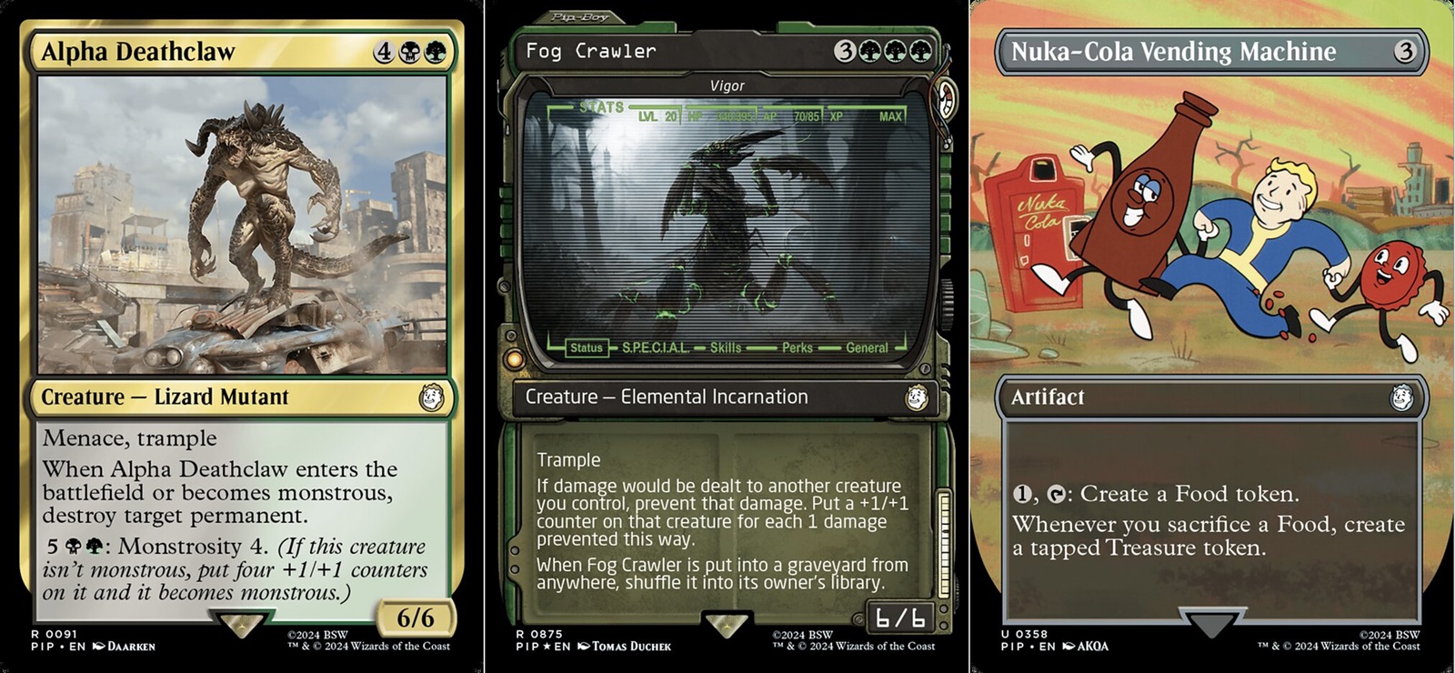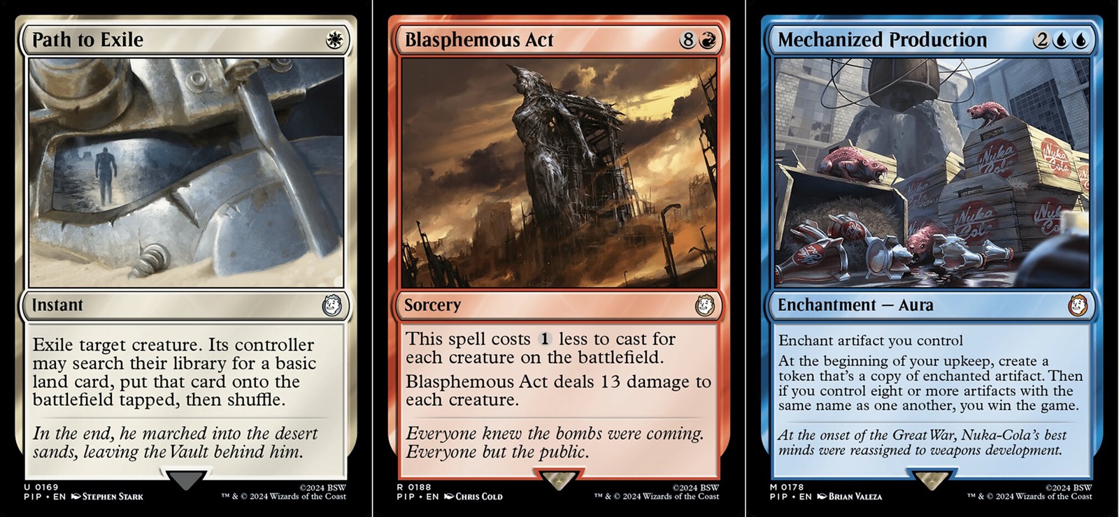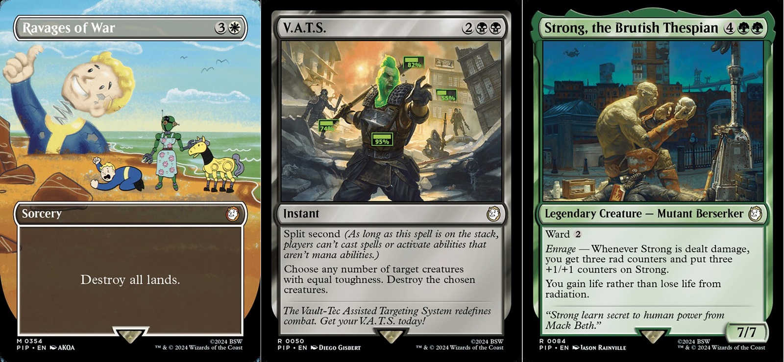 Existing MtG with new Fallout themed artwork. Other great reprints include: Solemn Simulacrum, Steel Overseer, Puresteel Paladin, Skullclamp, Mantle of the Ancients, Fraying Sanity, Tireless Tracker…I’ll stop now…