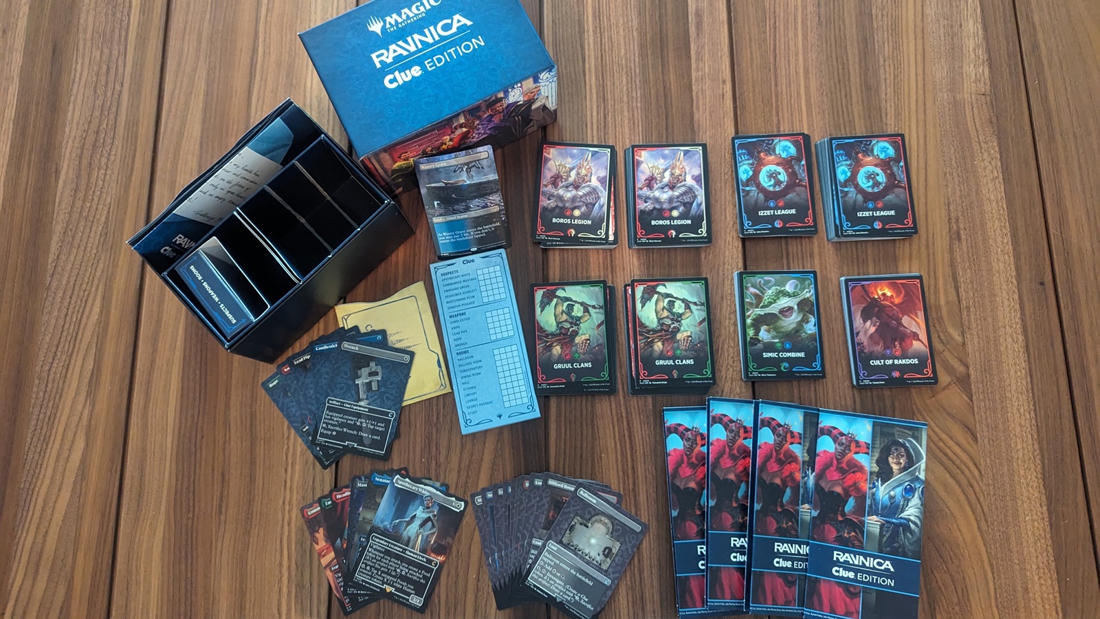 So right out of the gate I want to say I’m pretty down on this product, but at the same time I’m glad it exists. Is that weird? It feels weird. Ravnica: Clue Edition is at least something different and shows that Wizards of the Coast is willing to try new things. A little background: Wizards has a history of trying to make a “board game” version of MtG. There have been various attempts at this with an example being the multiple Game Night box sets. Ravnica: Clue Edition feels like another attempt at the MtG game in a box. The idea behind these standalone sets is to create something that you can take off your shelf and play a multiplayer game of Magic: The Gathering. “Isn’t that what the Commander format is for?” I hear you ask. Yes, the Commander format is for multiplayer games of MtG and is currently the most popular format. This is a contributing factor to the identity crisis these “board game” versions of MtG. Why should I buy this over getting a Commander precon or building a Commander deck? Maybe you want a single product that everyone can use, or perhaps the tailored play experience that Wizards has designed is fun. However, as we take a look at the Ravnica: Clue Edition, we will see that it has some bad choices that hold it back from being a better game.