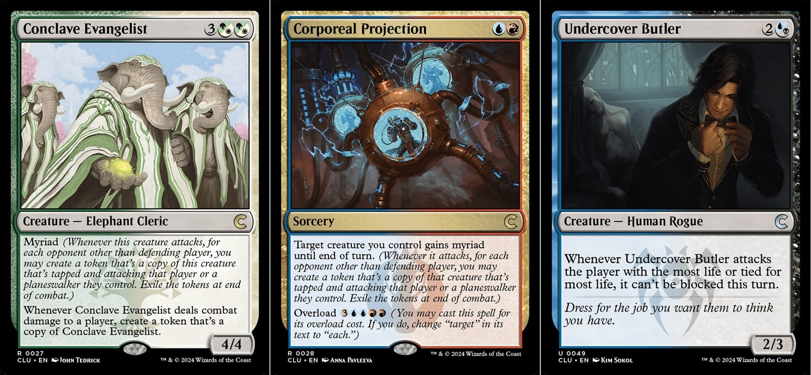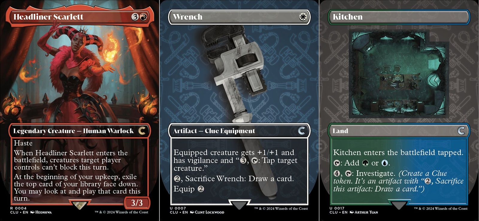 Let’s begin by exploring what Ravnica: Clue Edition is. Inside each box you will find 8 Ravnica: Clue Edition booster packs, 21 evidence cards, 4 hidden information screens, a case file envelope, and one random CLU (CLU is the set name) edition shockland. Each player takes two of the booster packs and shuffles them together to form their deck. There are two ways to win: either be the last player alive, or solve the murder before any other player. Since this is inspired by Clue/Cluedo, the evidence cards are used to create the correct suspect, murder weapon, and location by drawing one of each and filing them away. The remaining evidence cards are randomly distributed to the players so each player has some information. The format plays under normal multiplayer rules with the addition that when you deal combat damage to players, you make a Suggestion about the answer to the murder. An example being” “I think Headliner Scarlett did it, with the Knife, in the Dining Room.” If that player has any of the cards you suggested to them, they must show you one of them. This is how you will narrow down your information for finding the answer to the murder. You can later attempt to solve the mystery by making an Accusation and guessing the murderer, murder weapon, and location, but if you are wrong you can now only win by eliminating the other players. There are other format specific rules such as everyone starting at 30 life, when you must give out information you create a treasure token, and an alternate way to make suggestions by exiling cards from your graveyard.