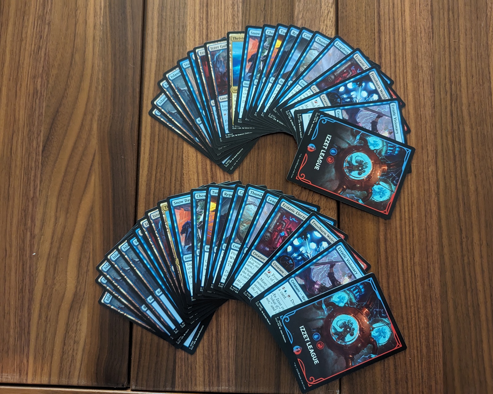 Inside each copy you’ll find eight CLU edition booster packs. These are random booster packs from a pool of twenty total packs. Ravnica has ten two color guilds and there’s two packs for each guild. For example there’s a “red” Izzet pack (Izzet League 1) and a “blue” Izzet pack (Izzet League 2). If you have both packs you can combine them into the full Izzet League deck. It is possible that you’ll pull decks that work better together, or decks that don’t synergize as well. Everything is designed to work together in some way, but there are combinations that clearly work together better.