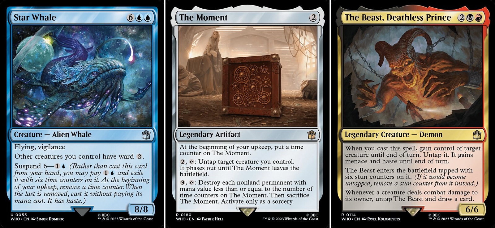 The only negative I have with the Doctor Who Commander decks isn’t even a real criticism. I tend to look at Universes Beyond products as something that might bring new players to the game and here these decks are not a good starting point for Magic: the Gathering. Perhaps learning to pilot one of these decks would make a great goal for a new player, but I would not start someone new to Magic with these decks. If you play a lot of constructed Commander, these decks aren’t any more complicated than player constructed decks, but there’s a lot of triggered/activated abilities, +1/+1 counters, and various mechanics from all over Magic inside them. That being said, this means there’s a lot for veterans here. Whether you keep them assembled or build new decks from the cards within, there’s so much potential for new Commander plays it’s dizzying.