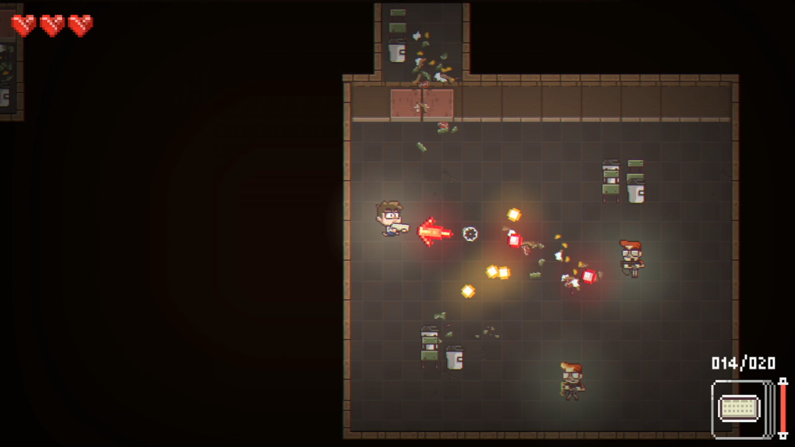 Now, following the order of the story, let’s talk about Jack’s expertise: gameplay, but more specifically, the minigames. The minigames are a mixed bag for me; on one hand, I like the variety of games that they paid homage to, but on the other, the execution had some issues. Throughout Indiecalypse, you’ll encounter situations that must be completed in the form of other video games. To name a few examples, you escape some bullies in an Enter the Gungeon style level, you can kill flies in a Duck Hunt style section, and you even program some code via Guitar Hero gameplay. There are 21 other minigames, all with their charms and issues. The charm essentially boils down to how neat it is to get little snippets of other games within this one game. The issues are a different story.