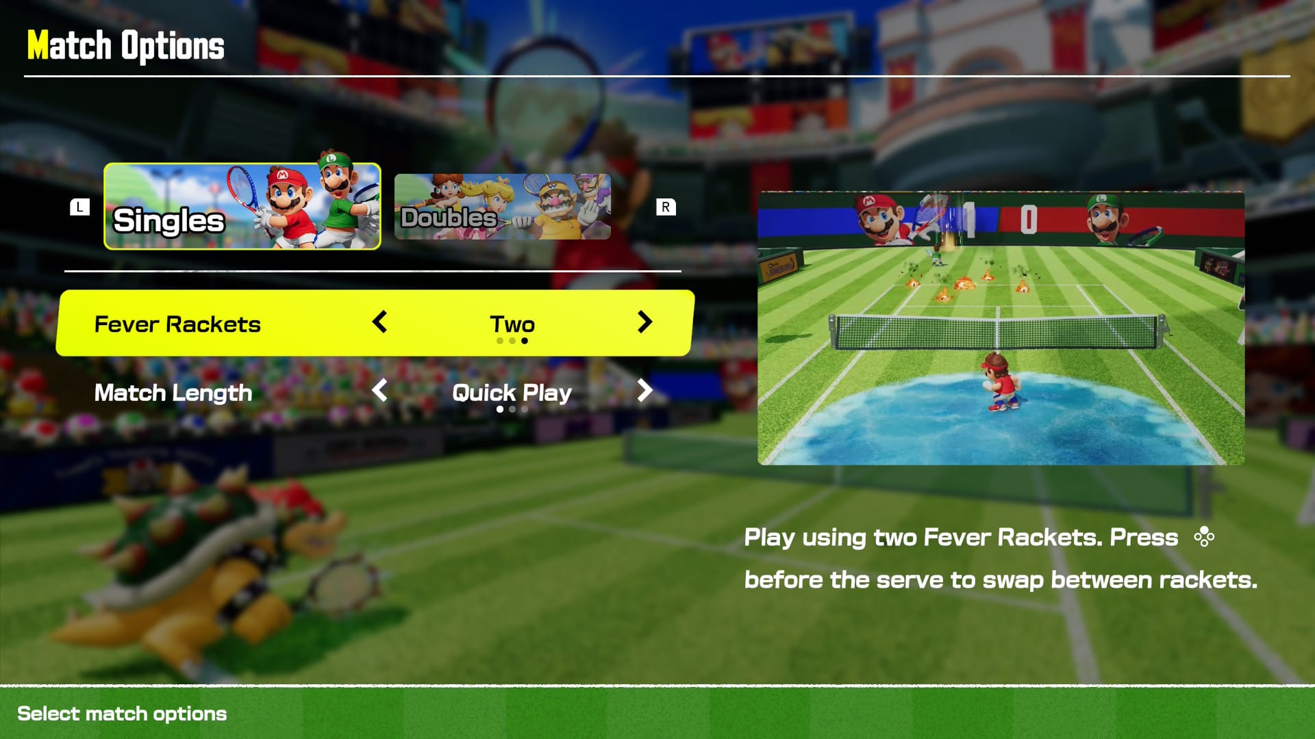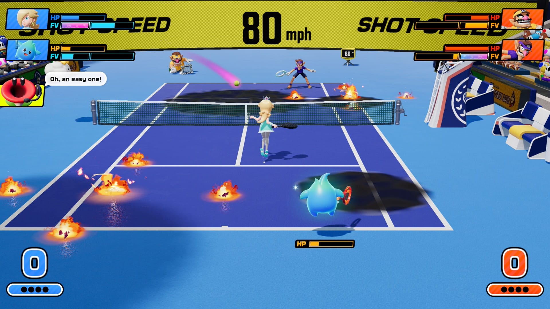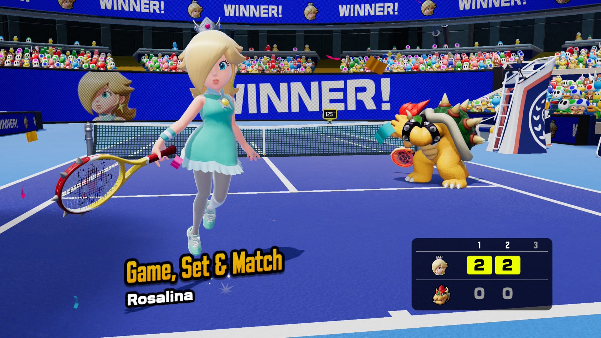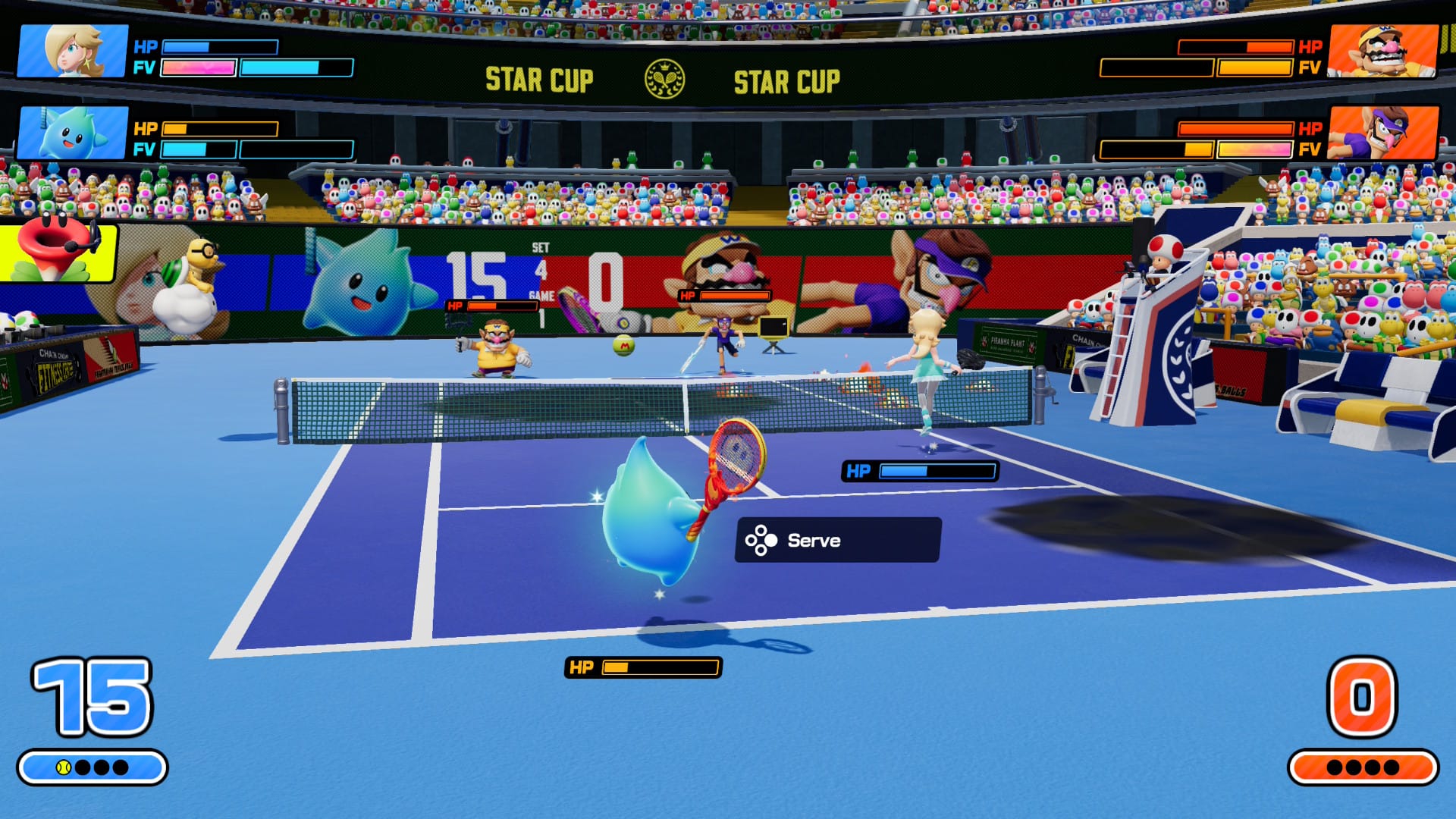 Before anything else, I wanted to point out that the new Fever Rackets are the best way I've enjoyed power ups in a Mario Tennis game. While each character still has their individual skill, such as Rosalina being Tricky, Daisy being All-Around, Waluigi being Defensive, Bowser being Powerful, and Yoshi being Speedy, you now have power-ups that any character can use.