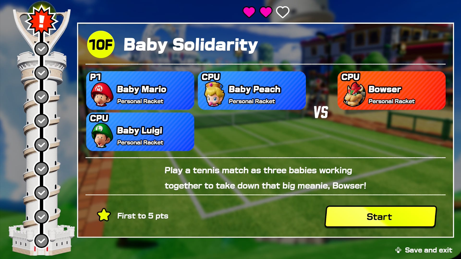 The only slight issue I had was the inability to turn off the special rackets to play with just "skill alone." However, playing through all of the tournaments with the ability rackets made me like them more and more! You can play this mode solo or with a friend! Challenge Rating: 5/10.
